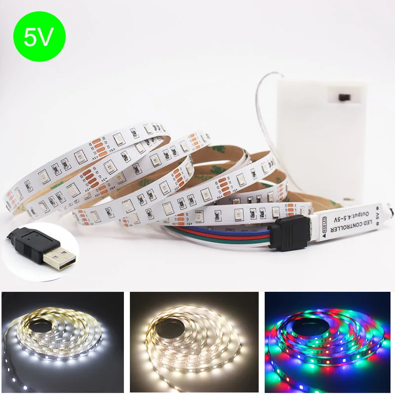 3AA батарея питания 5 в RGB Светодиодная лента светильник 2835 SMD 1 м 2 м 3 м 4 м 5 м 50 см Гибкий Светильник лента теплый белый полоса подсветка светильник