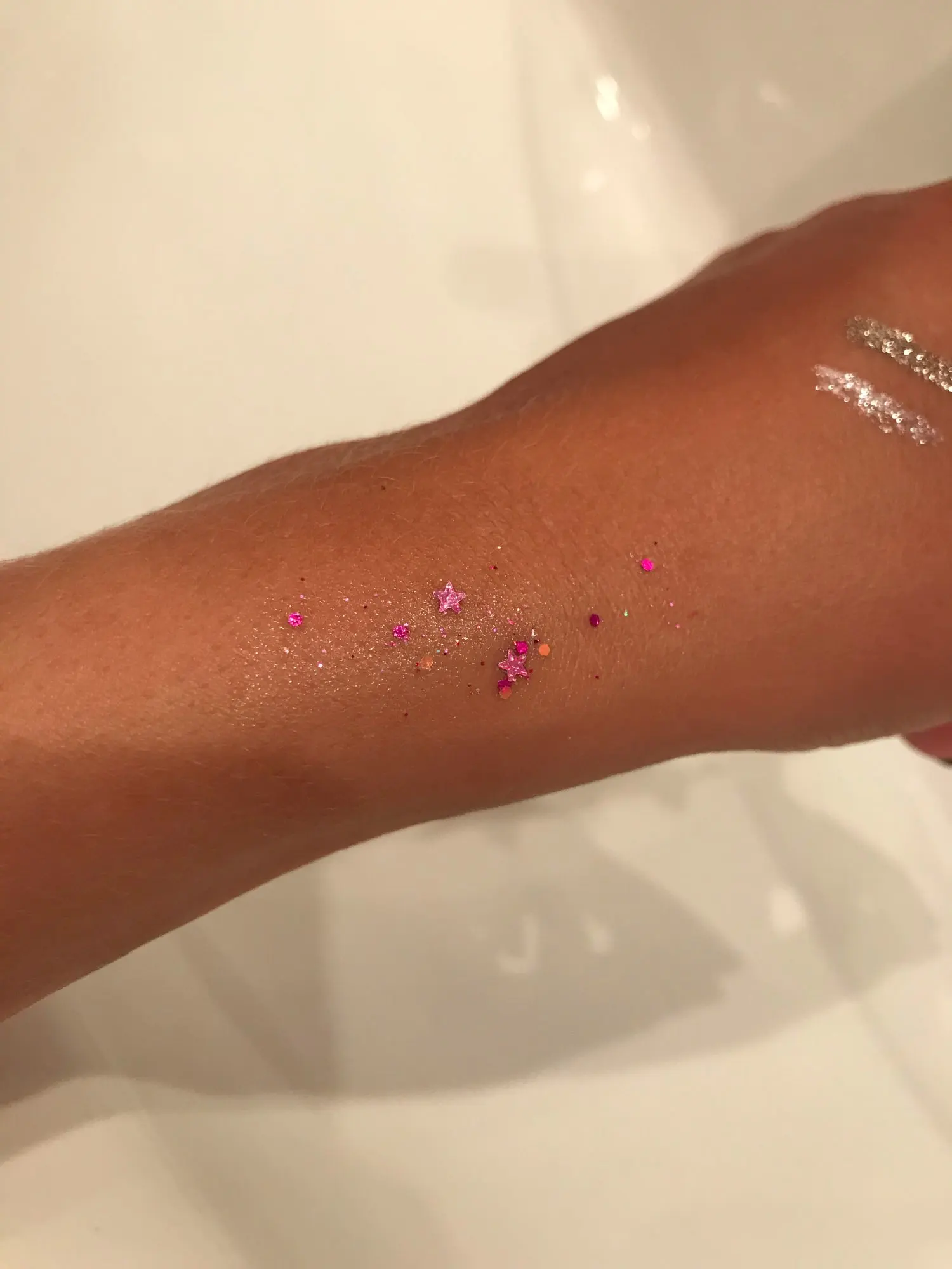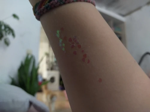 посылка пришла, очень быстро. блесточки держатся на теле. в меру жирные. советую.