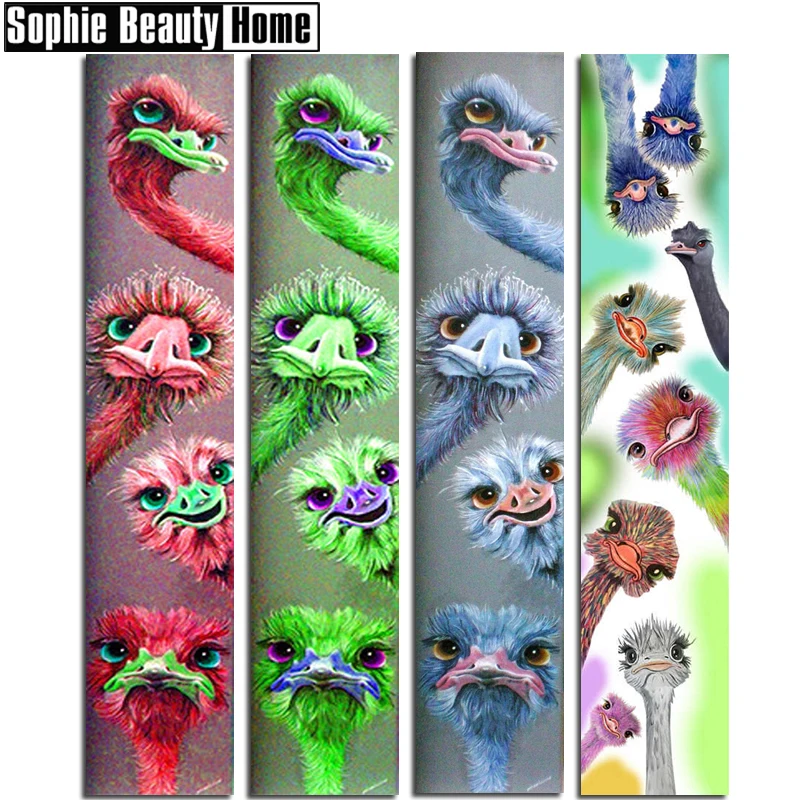 Полноразмернаякруглая Алмазная 5d-картина сделай сам с квадратнымикруглыми стразами, 3D Алмазная вышивка Страус с животными, 5D алмазная Вышивка крестиком, домашний декор, подарок 204040