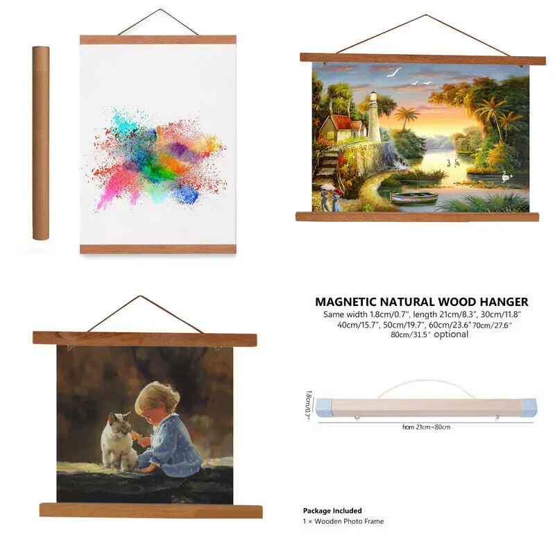 2130405060 см Магнитная деревянная фоторамка настенные подвесные плакаты картина прокрутки работа прокрутки вешалка украшение для дома