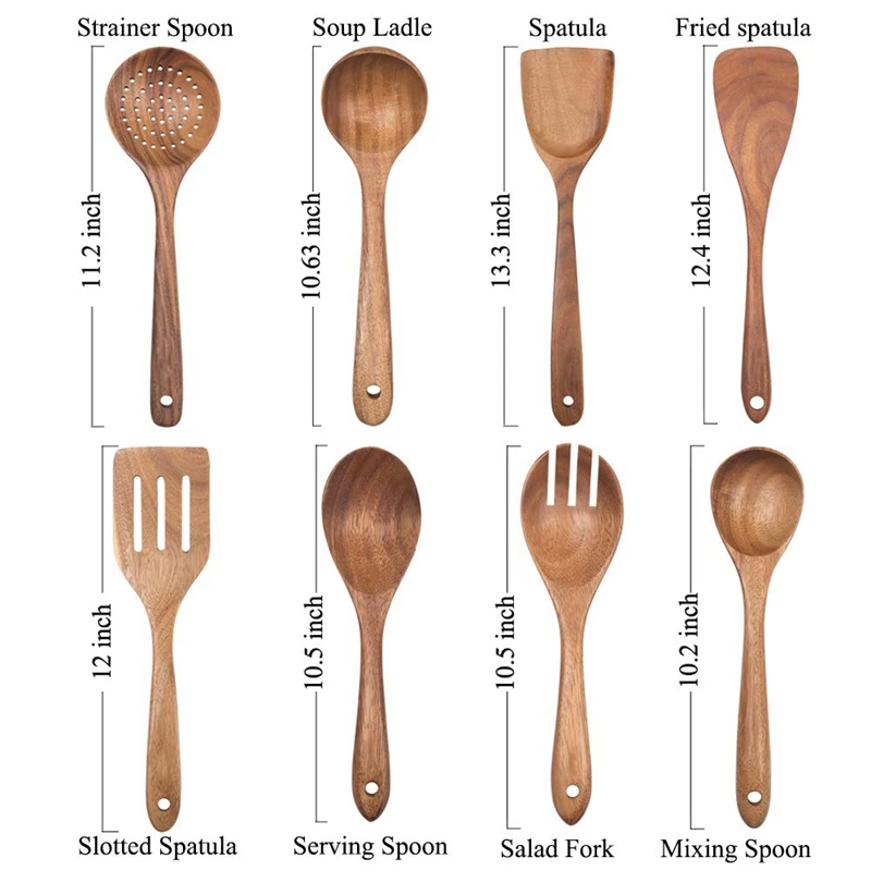 Набор из 5 деревянных ложек для приготовления пищи из акации: деревянная ложка для супа, круглая сервировочная ложка, деревянная лопатка, плоская Лопатка и ложки с прорезями, 5 предметов посуды для удовлетворения всех ваших потребностей в приготовлении пищи. И с висящими отверстиями для хранения стен легко.Прочная масивная древесина кухонная утварь: изготовлена из натурального дерева акации с толстой и прочной ручкой, отлично отшлифована, гладкая, легкая, прочная. Они покрыты натуральной краской (из лакового дерева), без BPA, ПВХ или фталатов. Безвреден для человеческого тела.Защита кухонных ложек и шпатель: они очень гладкие и приятные на ощупь, могут избежать царапин посуды, используются в антипригарных кастрюлях и отлично подходят для сервировки, переворачивания яиц, перемешивания, рыбы, блинчики и уличное использование.Используйте и ухаживайте за своей деревянной кухонной утварью: храните ваши кухонные ложки в лучшем виде, с нейтральной мыльной теплой водой руками и тщательно высушите после каждого использования. И избегайте абразивных веществ, прочных замачивания в воде и не помещайте в посудомоечную машину, микроволновую печь, морозильную камеру или духовку. Храните в хорошо проветриваемом месте вдали от тепла и солнечного света.Цвет: цвет дереваМатериал: ТикПосылка:1 x деревянная Лопата1 тонкая Лопата1 х дуршлаг1 суповая ложка1 х Ложка для перемешиванияТолько вышеуказанная посылка, другие товары не включены.Примечание: светильник и различные дисплеи могут привести к тому, что цвет товара на картинке немного отличается от реального. Допускается погрешность в измерениях +/- 1-3 см.