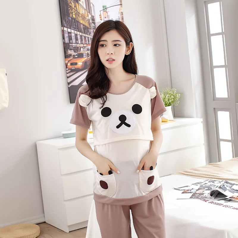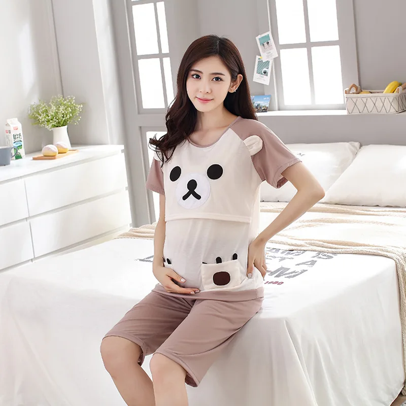Весенне-летний комплект для беременных и кормящих матерей Пижама с коротким рукавом футболка + шорты для беременных