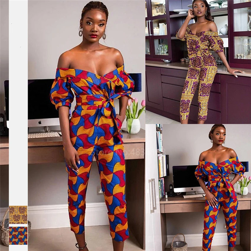 Африканские платья для женщин 2022 модные брюки Дашики с открытыми плечами комбинезон из Анкары брюки халат Африканский новинка одежда icon star icon star icon star icon star icon star