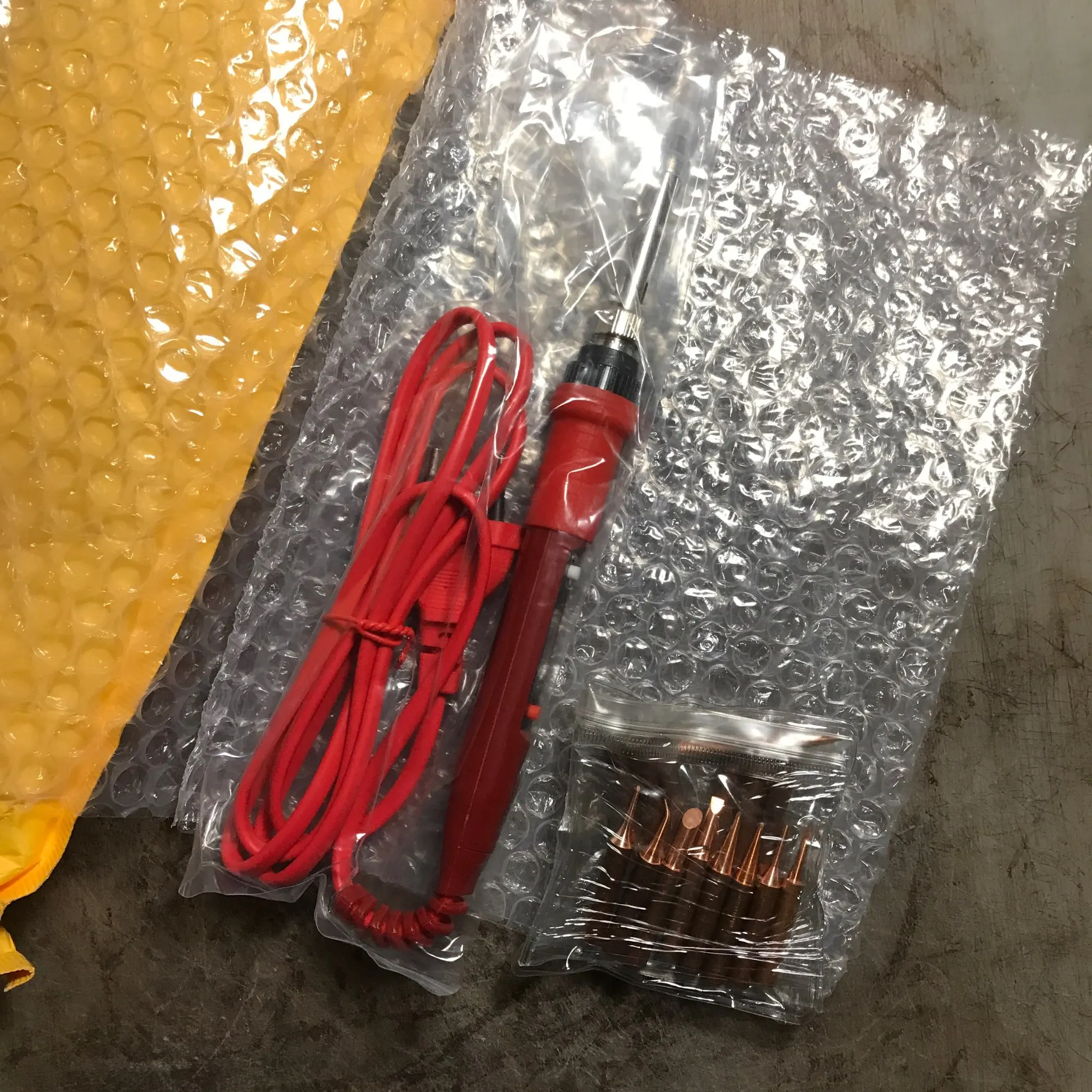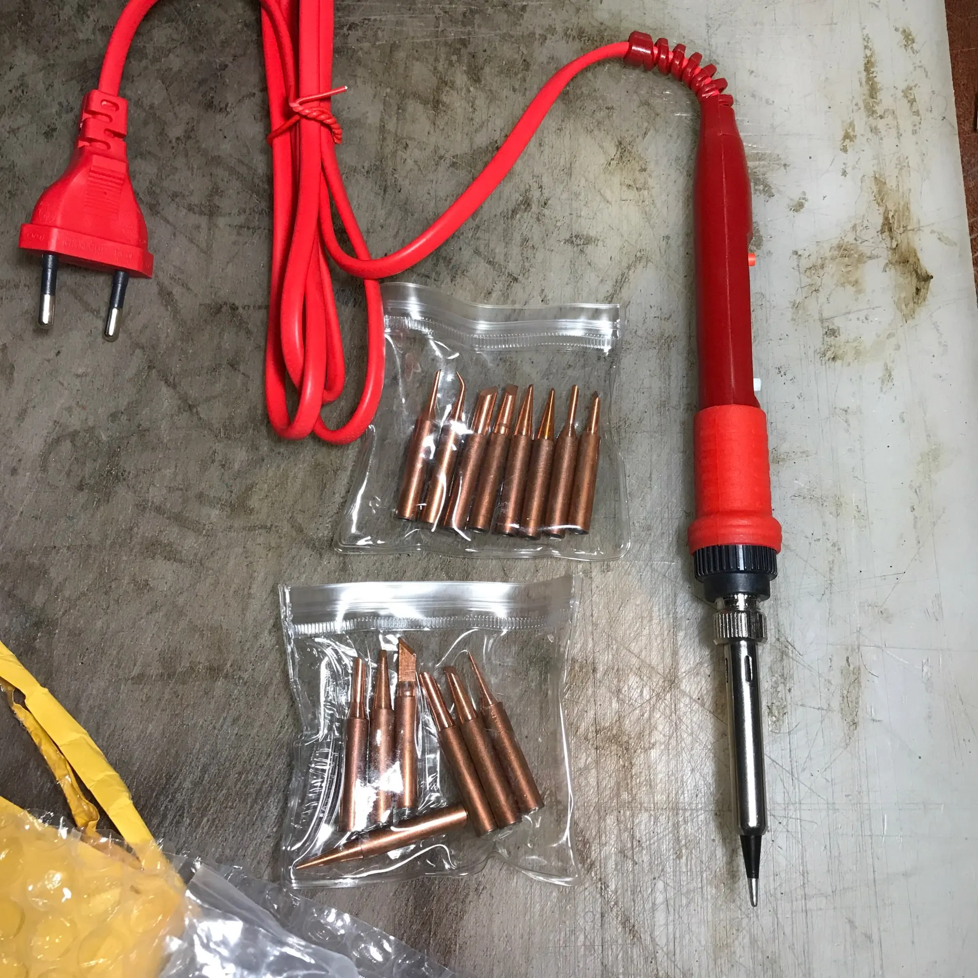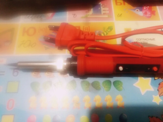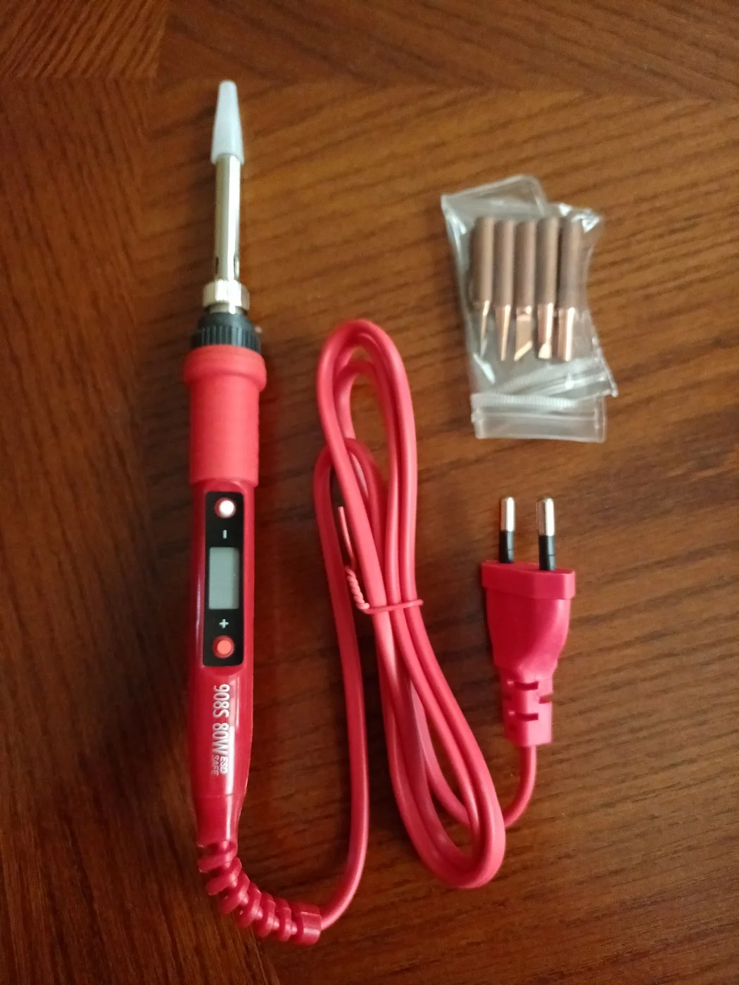 Прекрасный паяльник! разогревается до рабочей температуры меньше, чем за минуту. 15 медных жал в комплекте (не знаю, для чего). прорезиненная "держалка" для пальцев. Шнур достаточно гибкий, не "дубовый", и не выглядит дешевым. Жала облудились моментально.