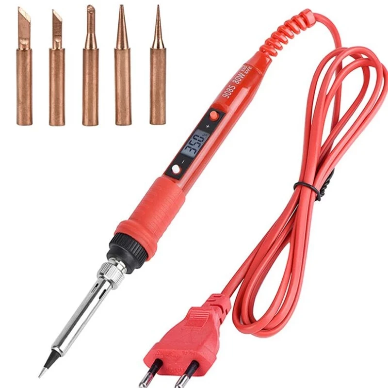 Набор для паяльника, 110 В, 220 В, 80 Вт, с регулируемой температурой, с керамическим нагревателем, 15 типов медных наконечников