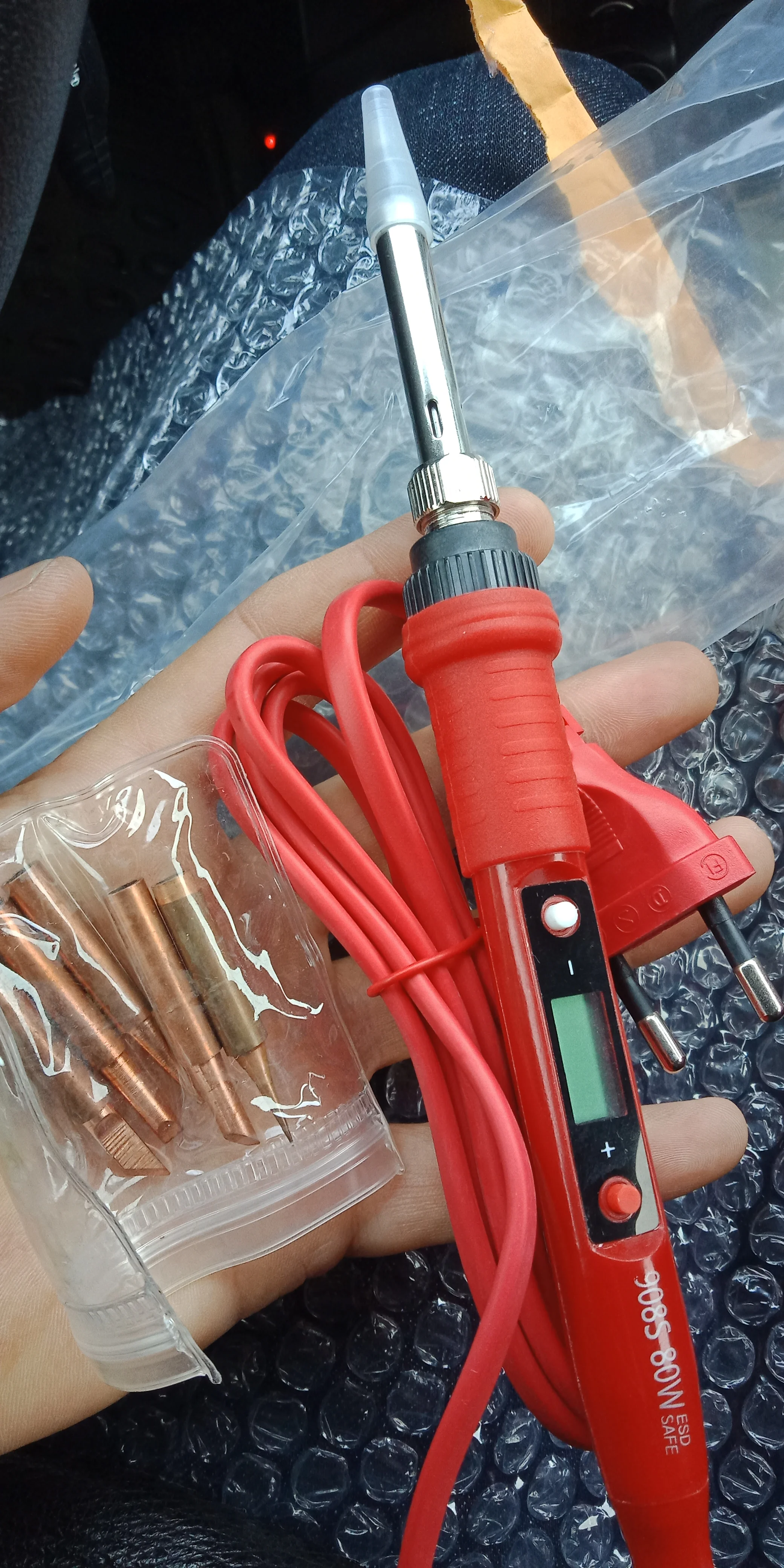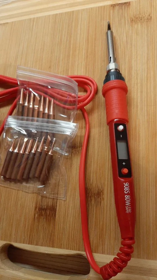 Очень быстрая доставка. Паяльник работает. 80W не пахнет, как мне кажется, ибо советский на 60W куда веселее паяет теплоемкие детали. Жала легкие, полые внутри. Понял почему стоит так недорого. Буду покупать нормальный, ибо этим даже реле не пропаять на машине нормально местами, так как тупо не хватает тепла. Кстати, температура на дисплее и на жале не очень совпадают...