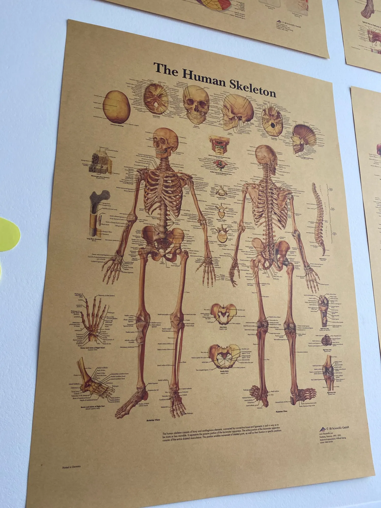 Конструкция тела Скелет нервная система ВИНТАЖНЫЙ ПЛАКАТ медицинский декор живопись стена искусство крафт-бумага настенные наклейки