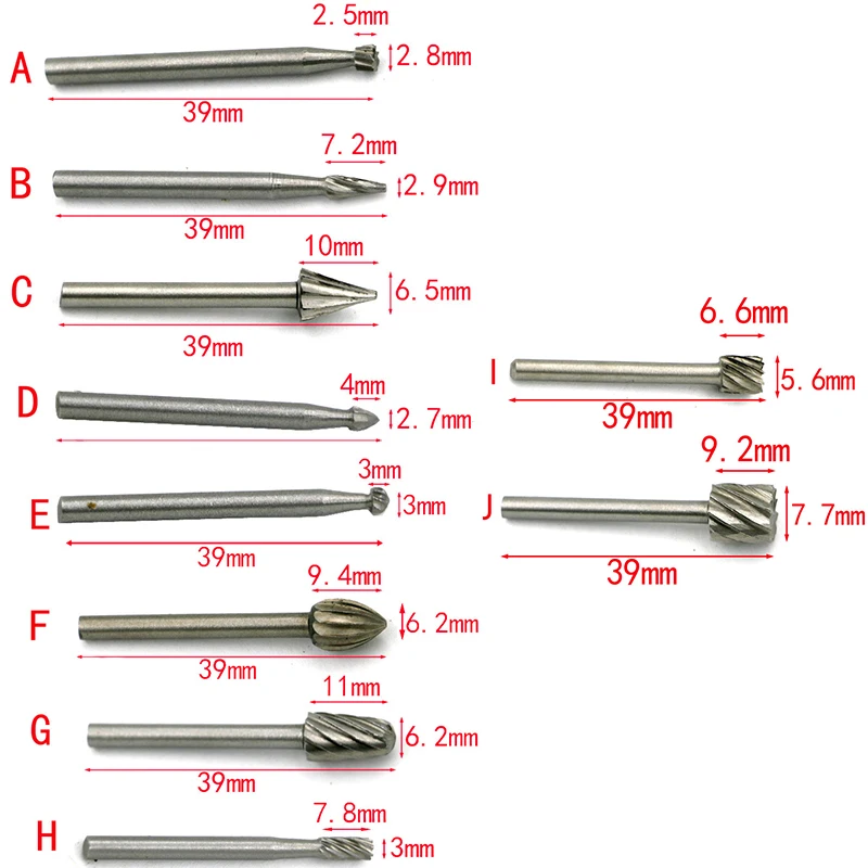 10 шт., HSS деревообрабатывающий фрезерный станок, Фрезерные фрезы, заусенцы, вращающийся инструмент, резной нож, инструмент для гравировки дерева