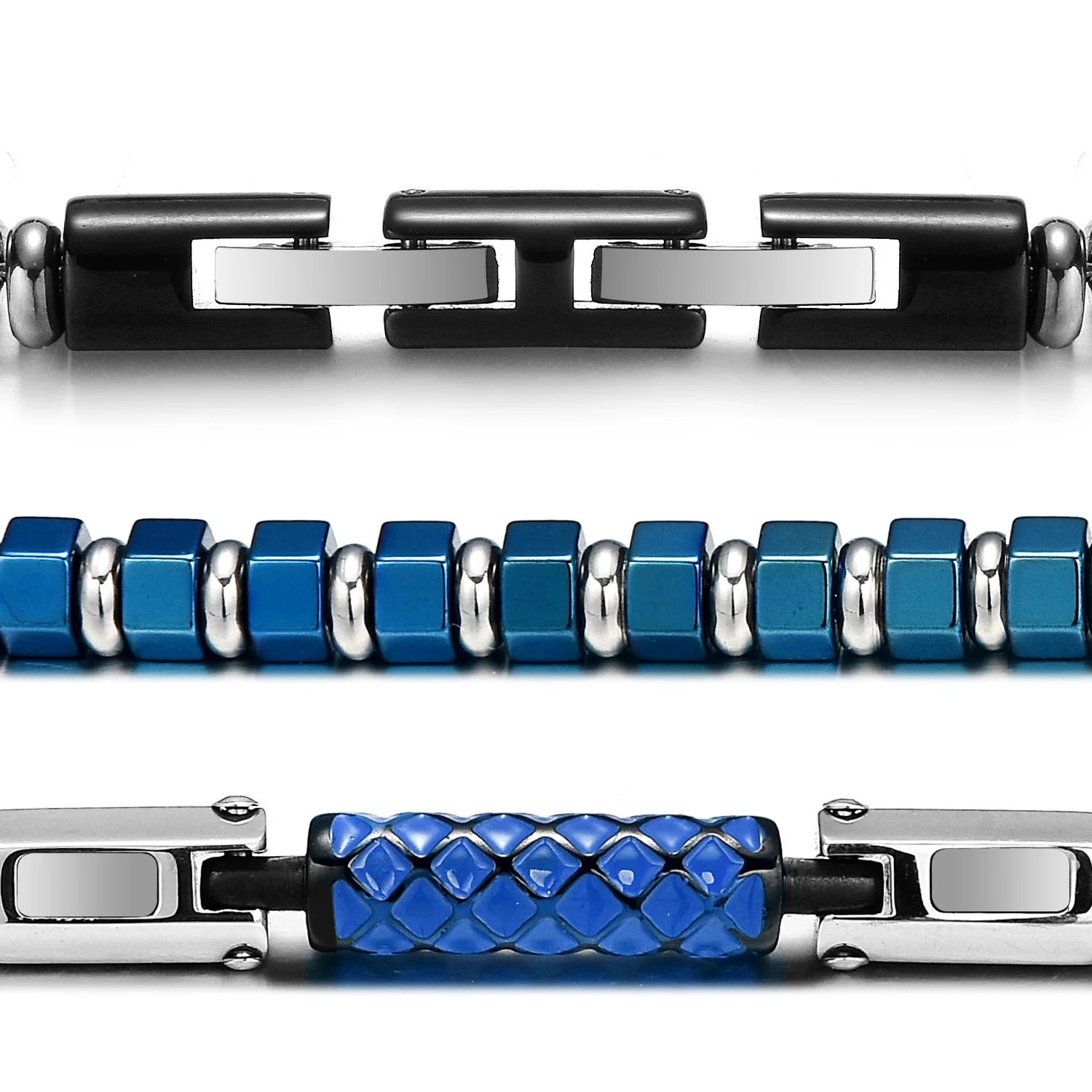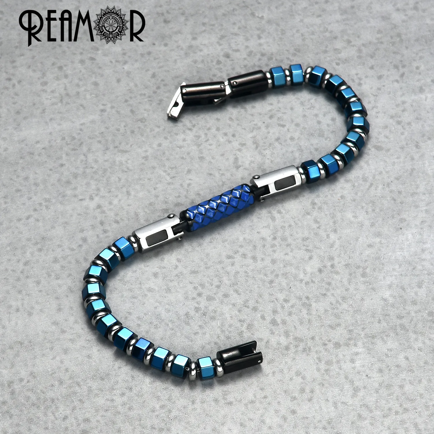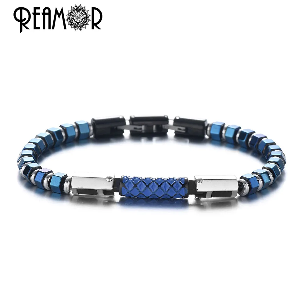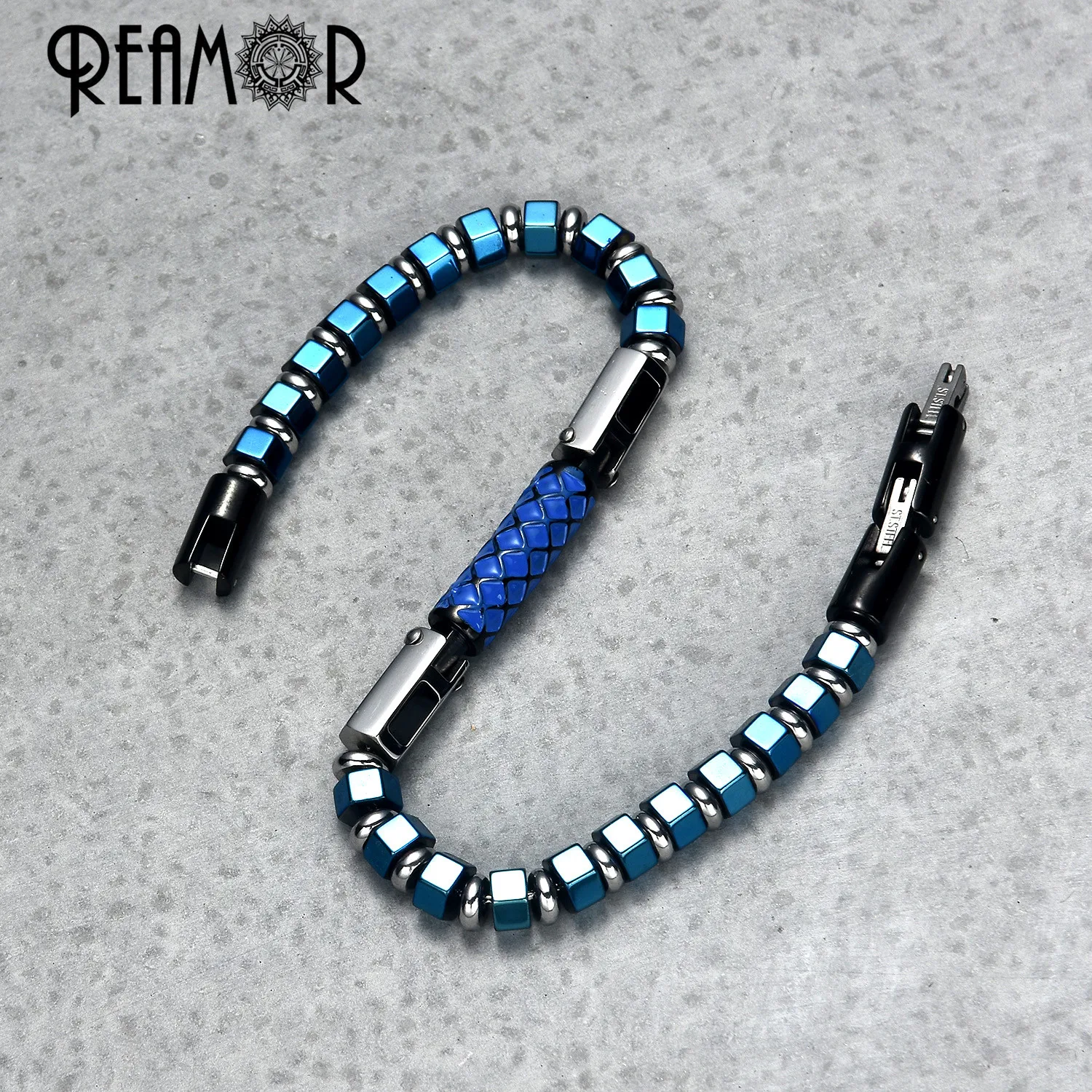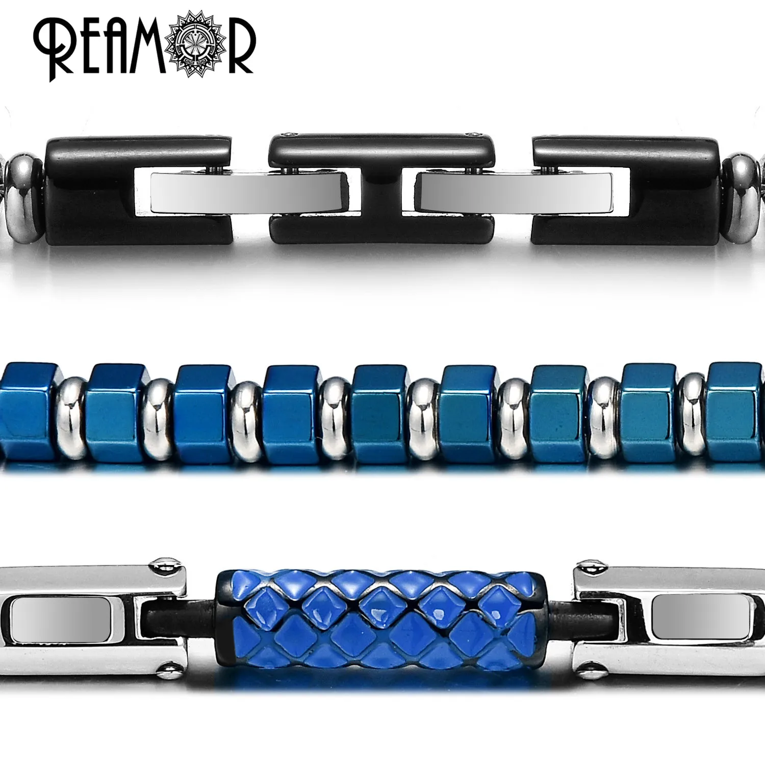 Роскошные Синие эмалевые браслеты REAMOR из нержавеющей стали с разъемом для мужчин и женщин, Синие Бриллианты со съемной застежкой, ювелирные изделия
