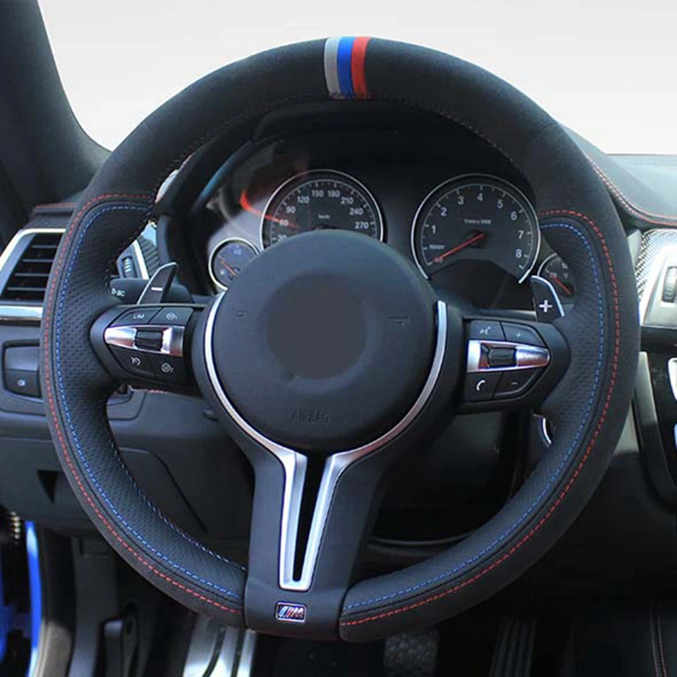 Сшитая вручную черная замша чехол рулевого колеса автомобиля для BM...
