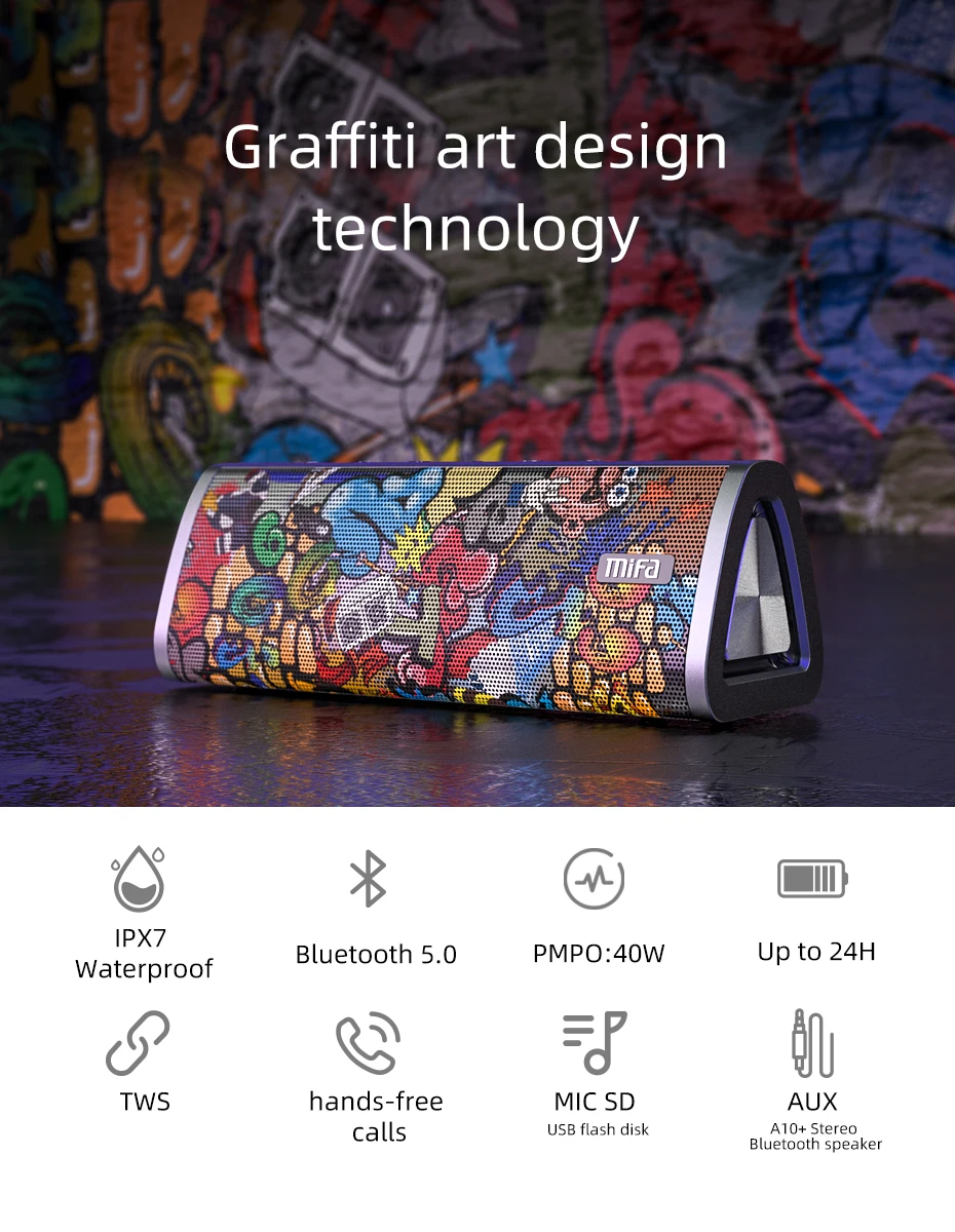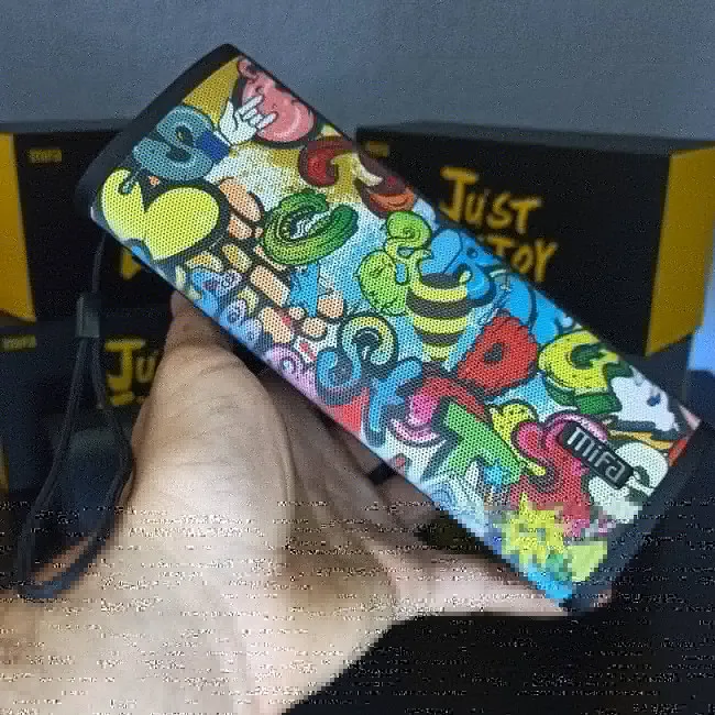 Я никогда раньше не слышал о бренде mifa, но в эти несколько дней я пробовал этот портативный рожок, я могу понять, что это качественная продукция, как в его компонентах, так и в этом случае в аудио, так как могут быть Лучшие звуковые качества, Но я доволен своей покупкой из-за нескольких факторов, таких как: дизайн Граффити, честно говоря, это инновационное, качество звука, очень хорошая цена, рамка имеет хорошие материалы, В сочетании с водонепроницаемостью и очень портативным размером. Таким образом, в завершение, я рекомендую бренд mifa, и особенно этот рожок, я уже мог попробовать.