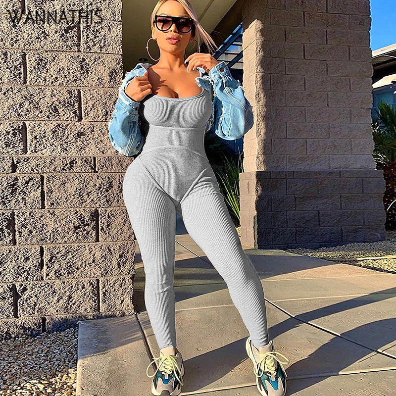 Женский комбинезон без рукавов WannaThis, повседневный облегающий эластичный комбинезон в рубчик для фитнеса, уличная одежда на лето