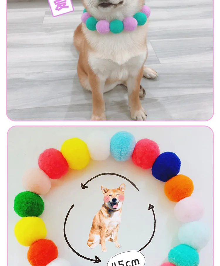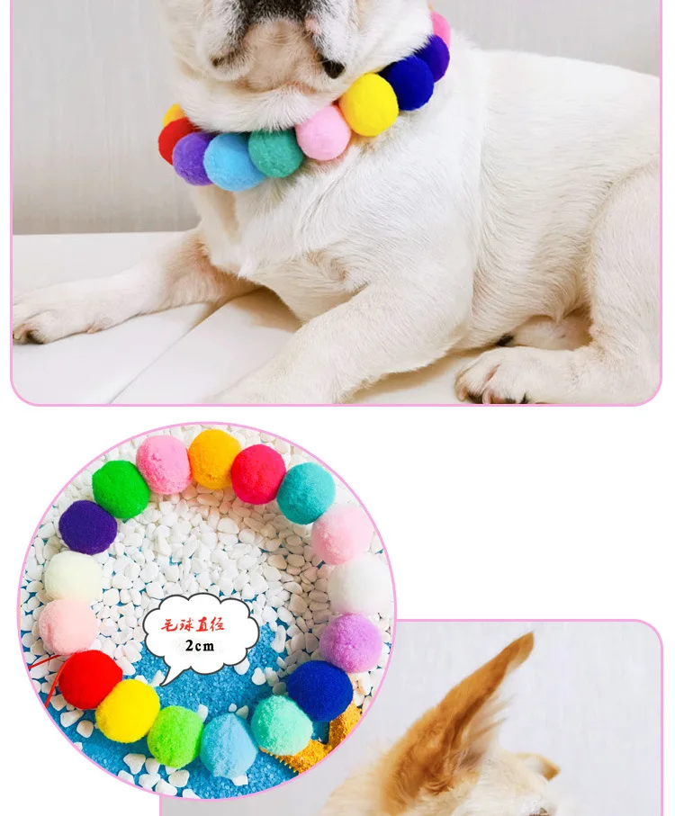 Ожерелье для кошек, собак, аксессуары для домашних животных, Радужный меховой шарик, регулируемый воротник
