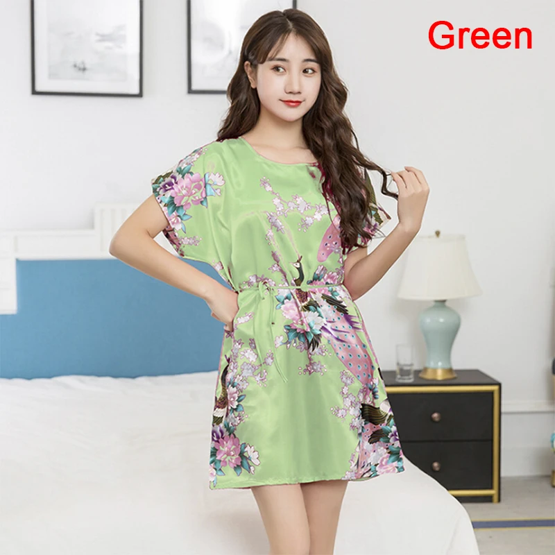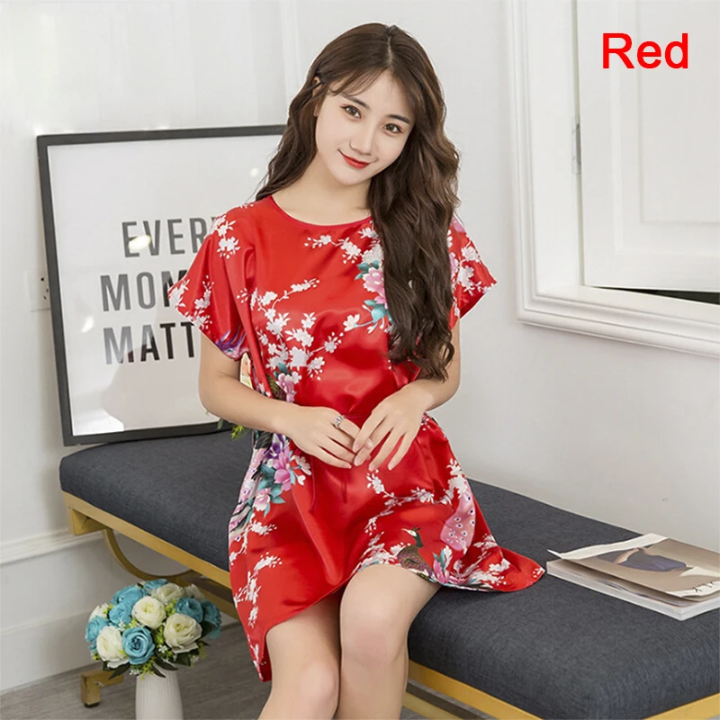 Женская атласная ночная рубашка, с коротким рукавом, из искусственного шелка