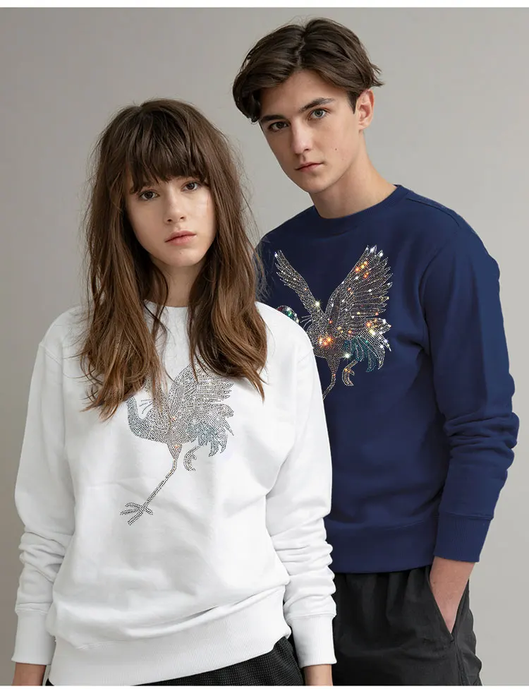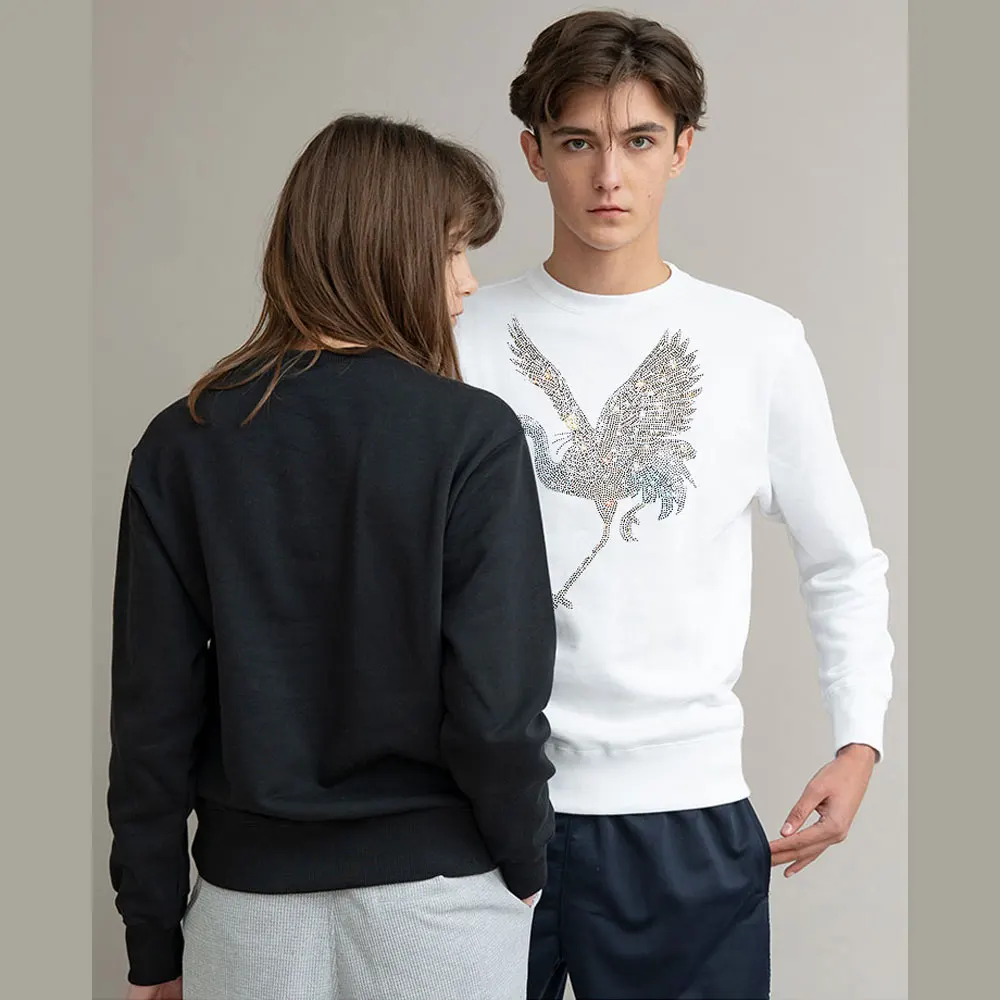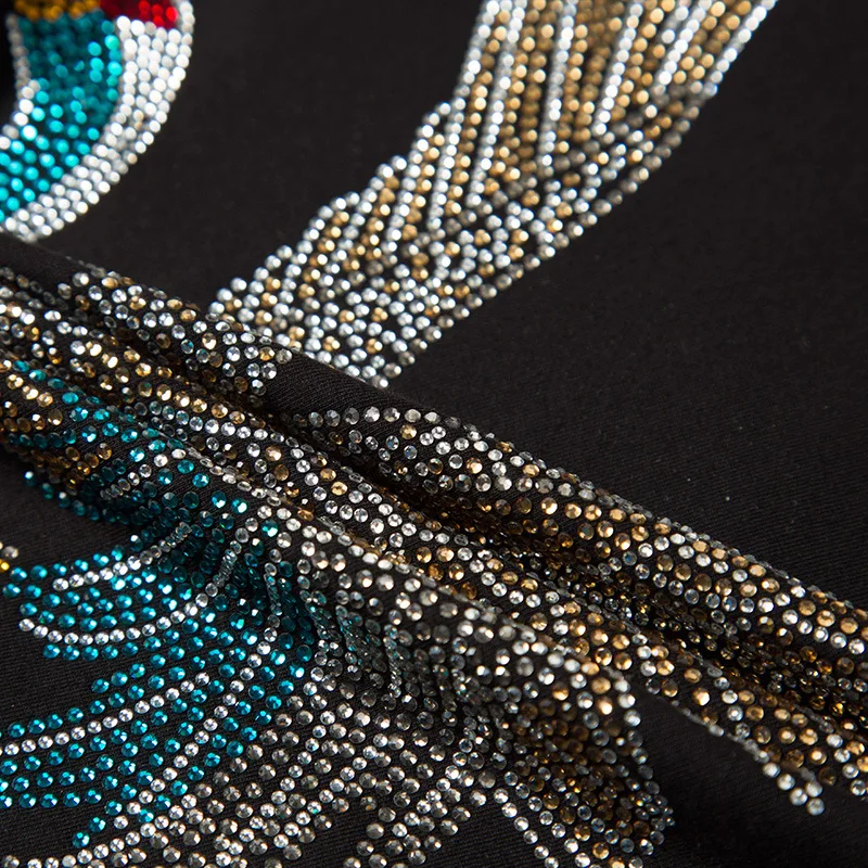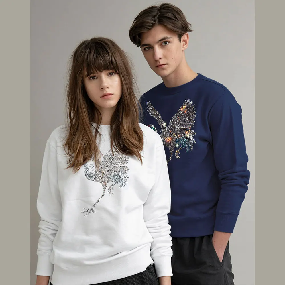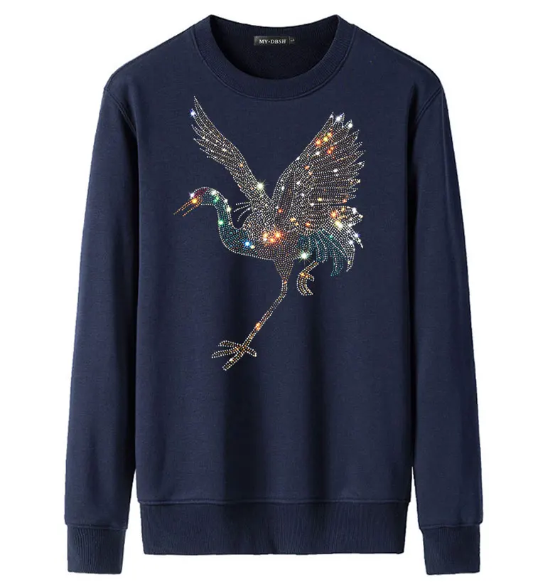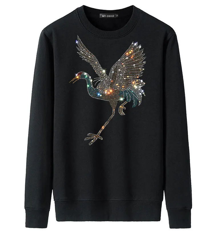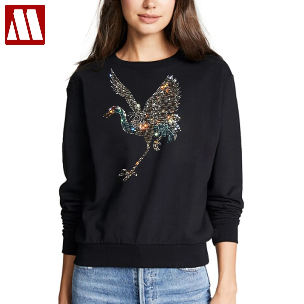 Женский свитшот с бисером и принтом птиц, осень 2022, толстовка с длинным рукавом и стразами, Женский свитшот