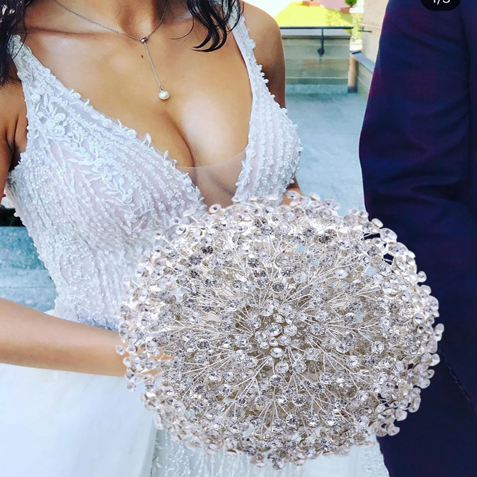 Серебряный алмаз свадебный букет цветы букет серебряная брошь букет свадебные аксессуары ювелирный букет