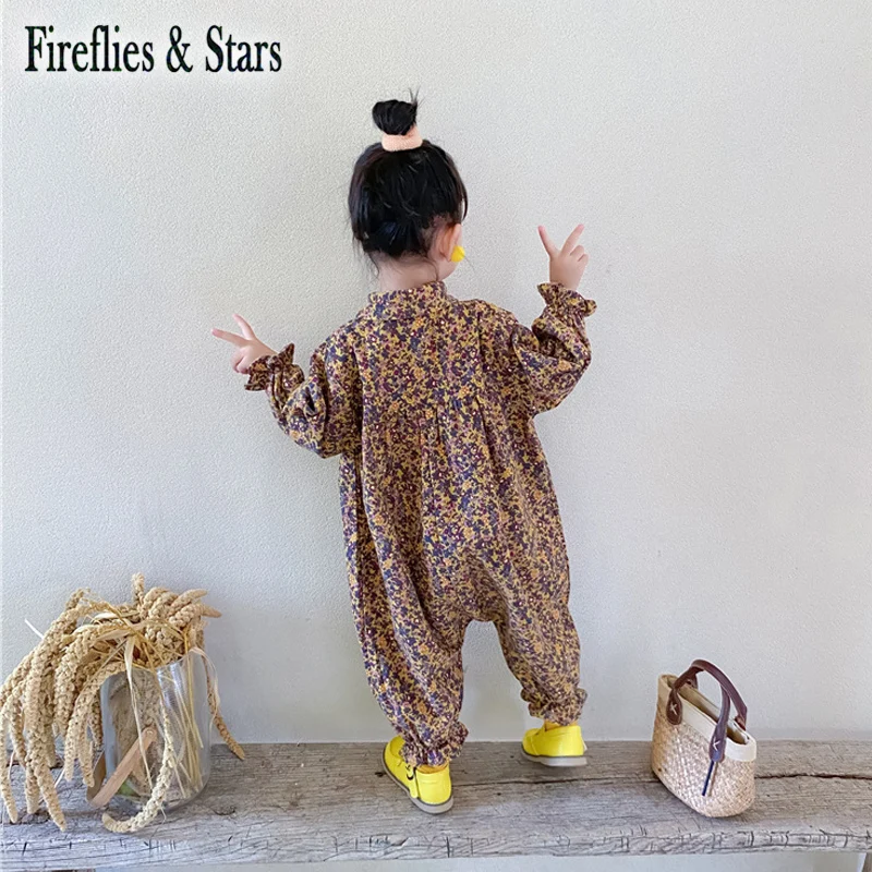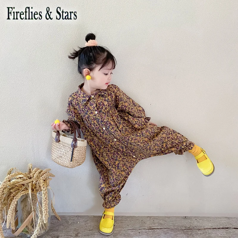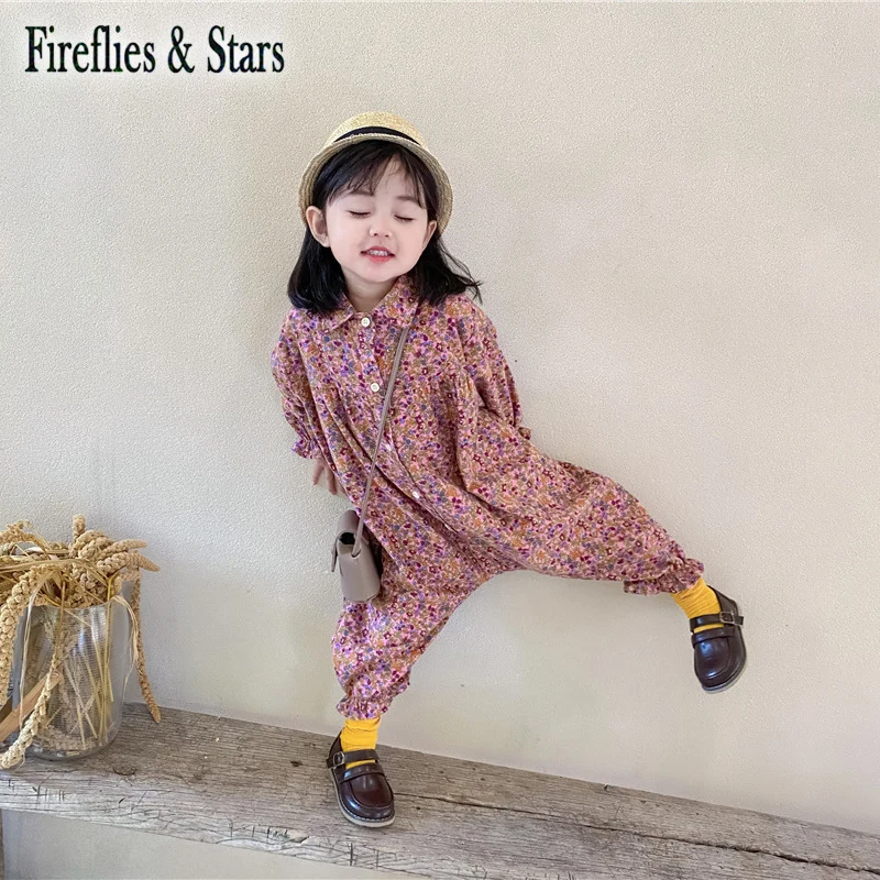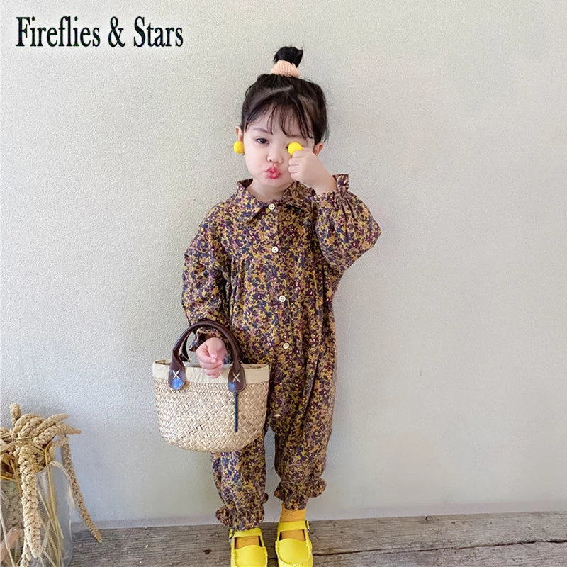 Название:Комбинезон для девочек на весну и осень, Цельный Детский комбинезон, детская одежда, новая модная одежда с широкими штанинами и цветочным рисунком, с рюшами, на возраст от 1 до 7 лет