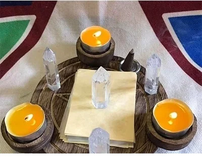 Астрология подсвечник из дерева table Pentacle алтарная Свеча держатель пластина Triquetra деревянные гадания Wicca церемония Аксессуары