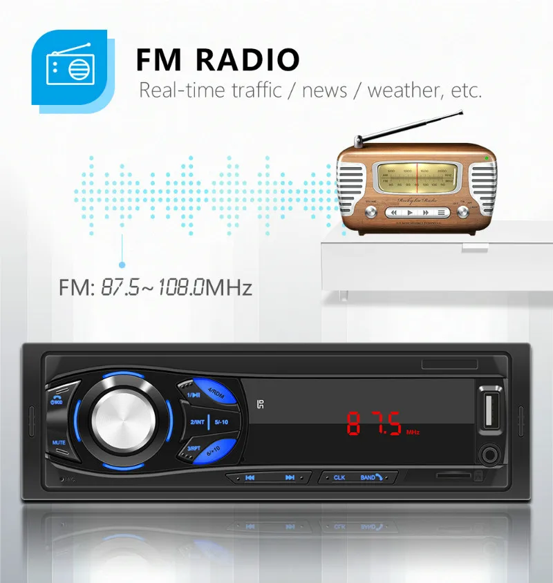 Автомагнитола ESSGOO 1 Din, Bluetooth, светодиодный экран, FM, Aux, вход Mp3, USB, AUX в FM