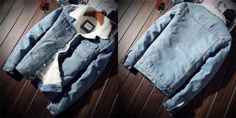 Куртка мужская джинсовая флисовая, модный теплый пиджак из денима, ковбойская Повседневная Верхняя одежда, большие размеры США 4XL, зима