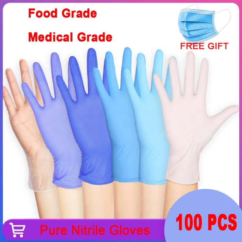 Одноразовые нитриловые перчатки 100 шт., пищевые водонепроницаемые гипоаллергенные защитные перчатки без пудры, защитные перчатки, нитриловые перчатки 100