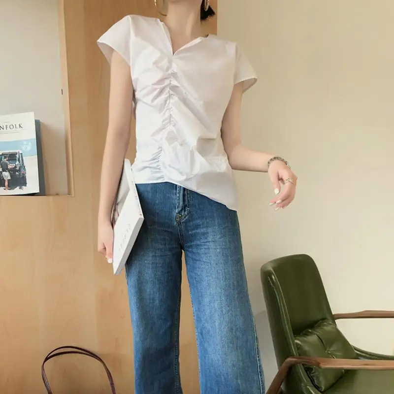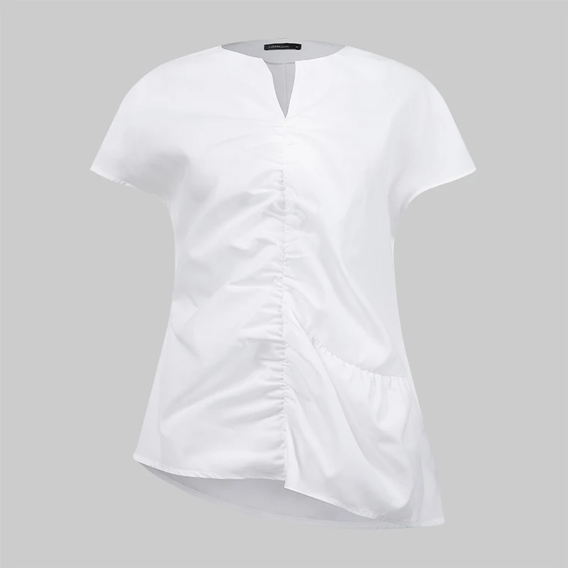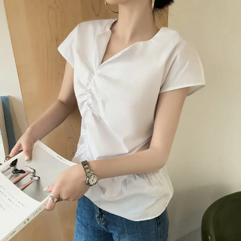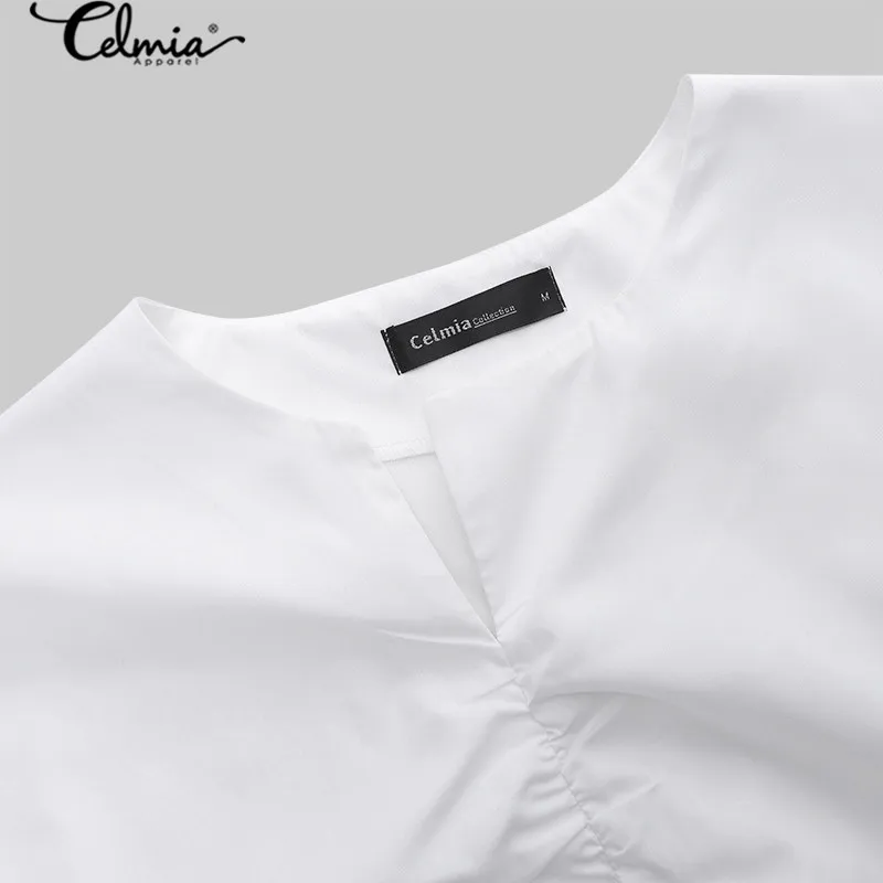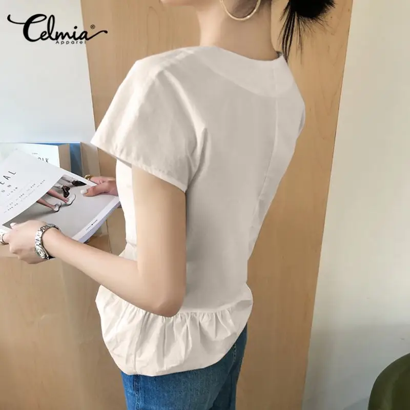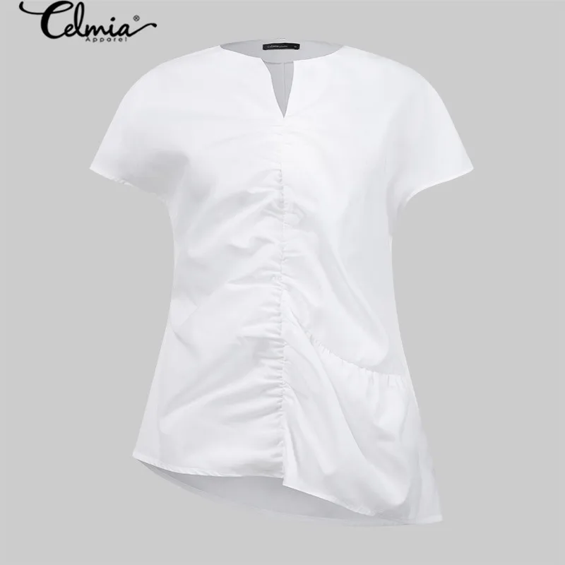 Блузка женская ассиметричная Плиссированная, стильный пикантный Топ Celmia с V-образным вырезом и коротким рукавом, Повседневная рубашка, свободная белая, лето 2021