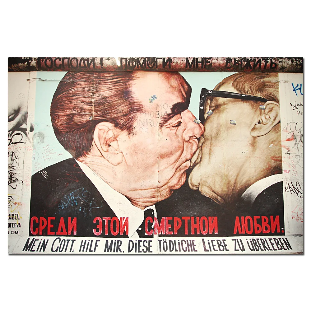 Настенный художественный постер картина Картина Брежнева поцелуй граффити живопись на холсте в Берлине картина на стену для Декор в гостиную украшения дома