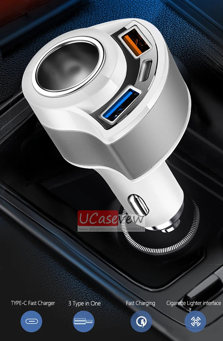 Автомобильное зарядное устройство QC 3,0, 18 Вт, быстрая зарядка, прикуриватель для iPhone, Samsung, Xiaomi, Huawei, USB Type C, автомобильный зарядный кабель PD