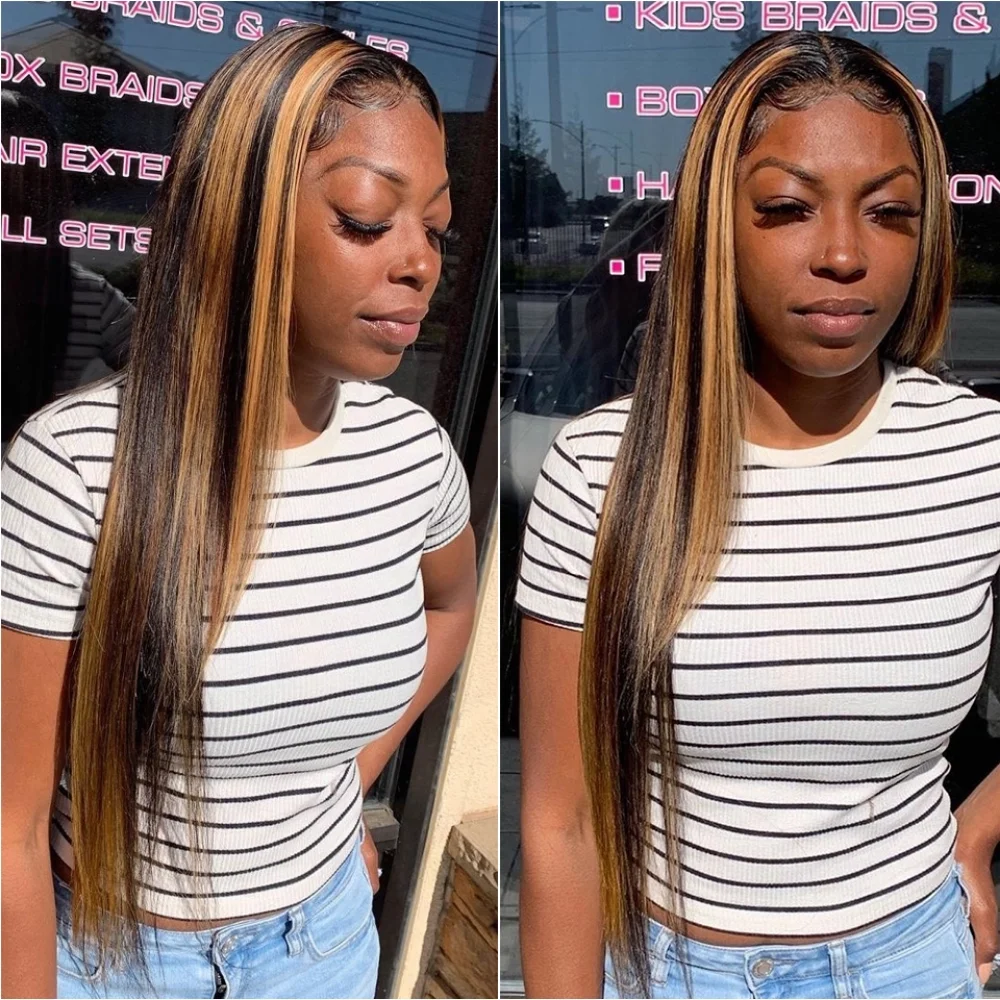 Медовый блонд подчеркивает парик Омбре прямые волосы T часть кружева парик предварительно собранные человеческие волосы бразильские Remy передние парики для черных женщин
