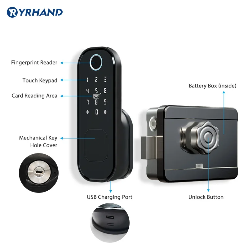 Дверной замок с отпечатком пальца, водонепроницаемый, для уличных ворот, Bluetooth, TT, Wi-Fi, паровой код, IC-карта, вход без ключа, электронный замок