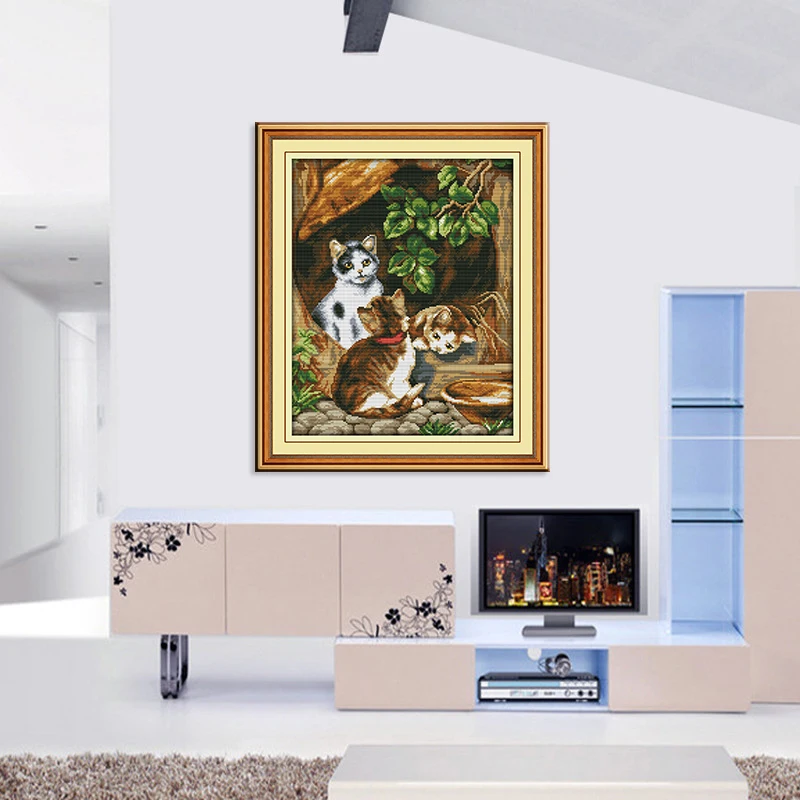 Joy Sunday Набор для вышивки крестиком с тремя кошками 11 и 14CT набор для рукоделия