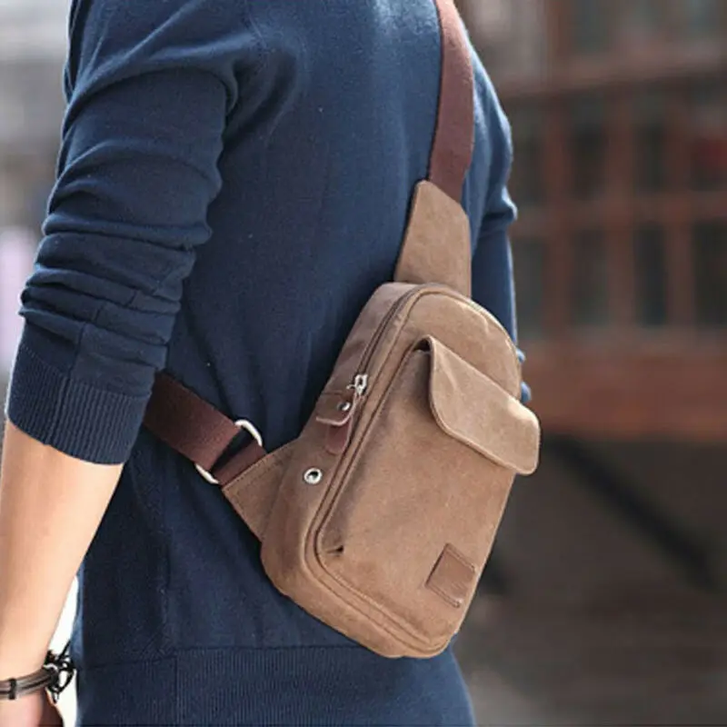 Модная холщовая нагрудная сумка для мужчин, маленький дорожный походный мессенджер через плечо