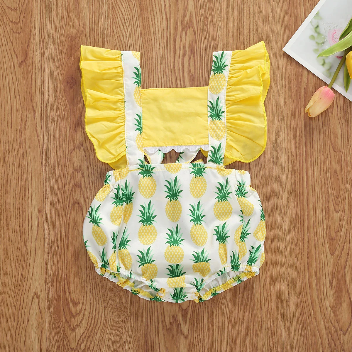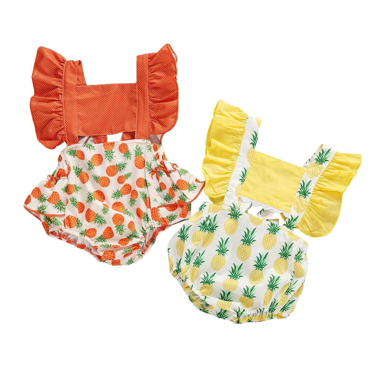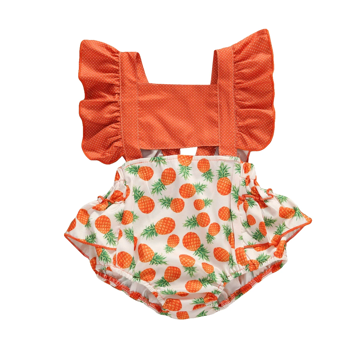 2020 г. Новая одежда для маленьких девочек летнее боди с рюшами и рукавами-крылышками, Милый принт с фруктами, хлопчатобумажный Детский комбинезон для маленьких девочек, одежда на возраст от 0 до 24 месяцев