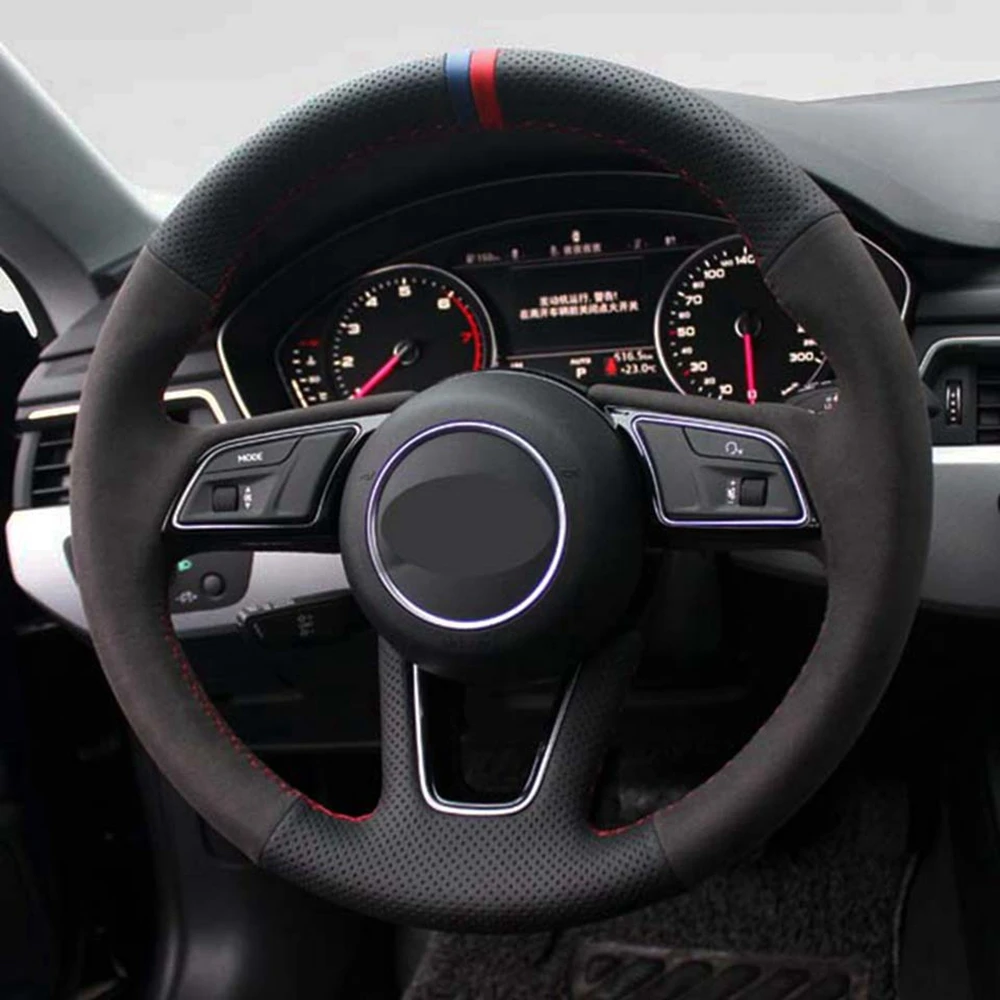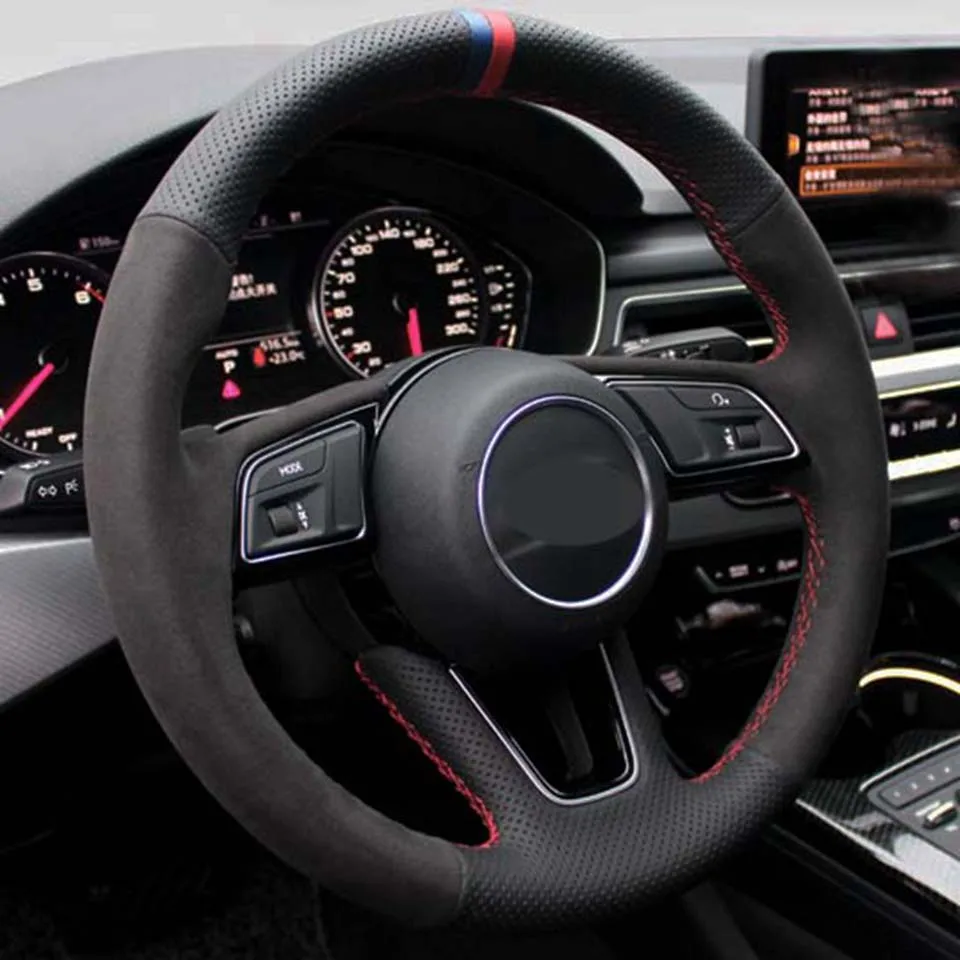 Чехол рулевого колеса автомобиля для Audi A4 (B9) Avant A5 (F5) Q2 A1 (8X) Sportback A3 (8V) Сделай Сам, черная замша, натуральная кожа