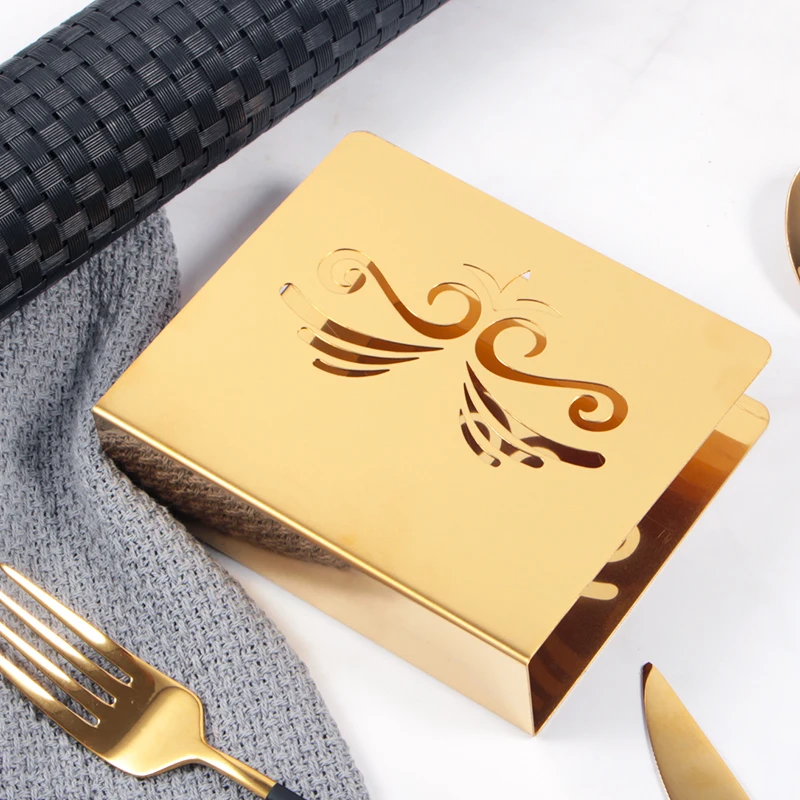 Золотистый держатель для полотенец, квадратный держатель для салфеток, креативный держатель для полотенец, держатель для салфеток из нержавеющей стали, Западный держатель для салфеток