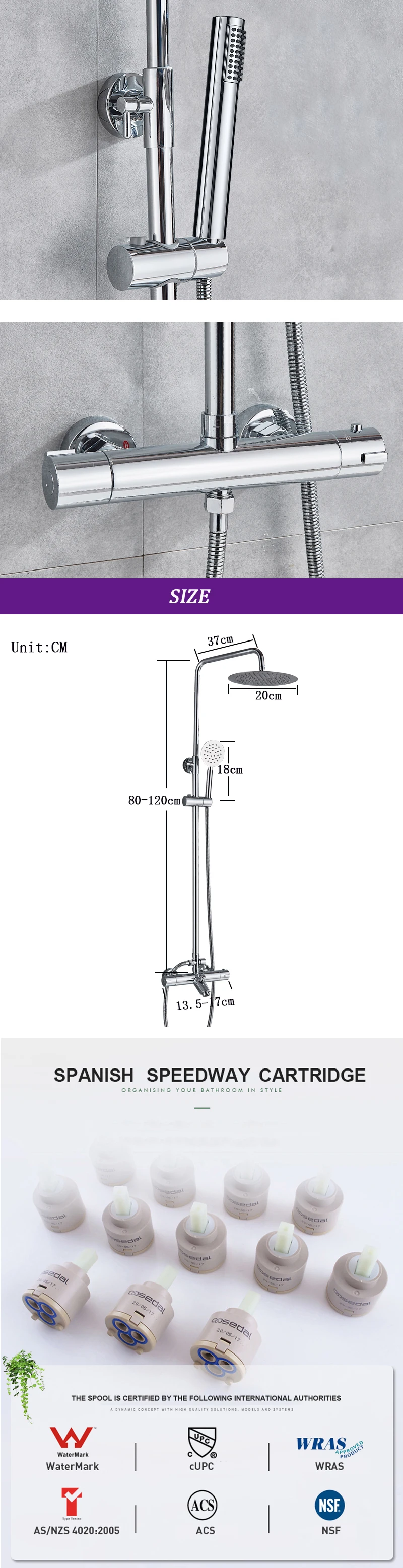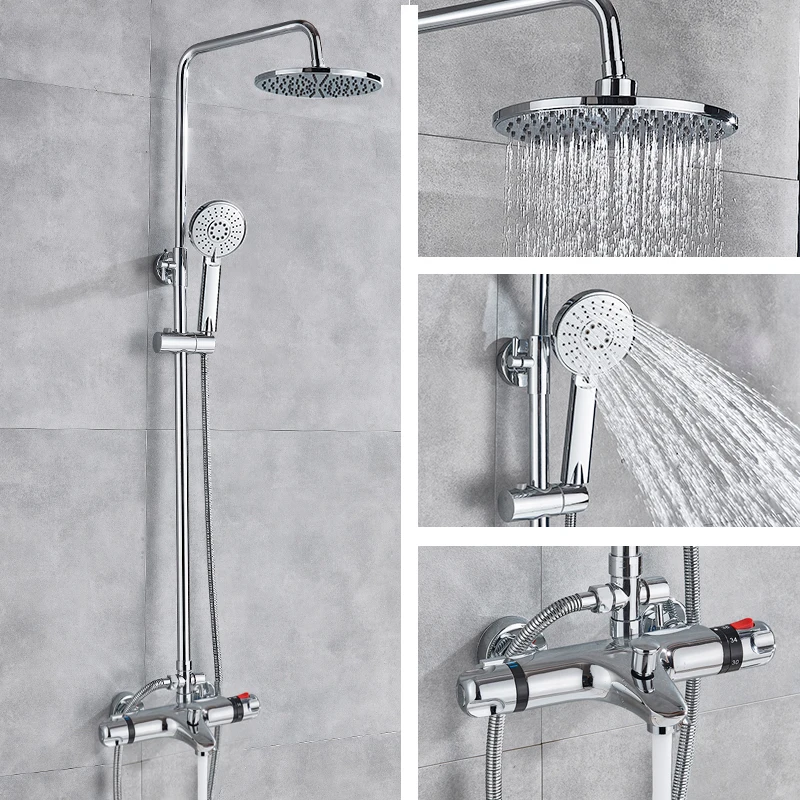 Термостатический душевой набор, смеситель, хромированный смеситель для душа 8 дюймов, 10 дюймов, двойные ручки, кран для горячей и холодной воды излив на ванну душ