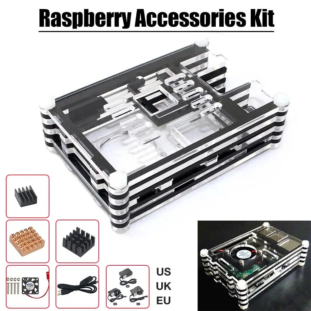 Вентилятор для аксессуаров Raspberry, набор 9-слойных акриловых корпусов, 5В 2.5A блок питания, охлаждающий вентилятор, набор для Raspberry pi 3B Plus 3 2