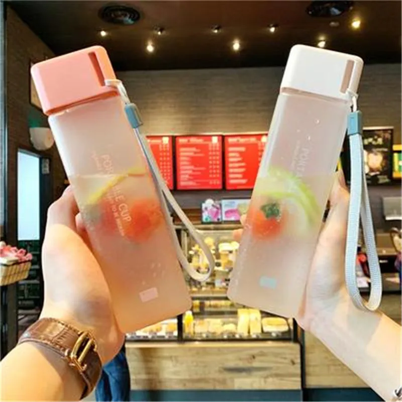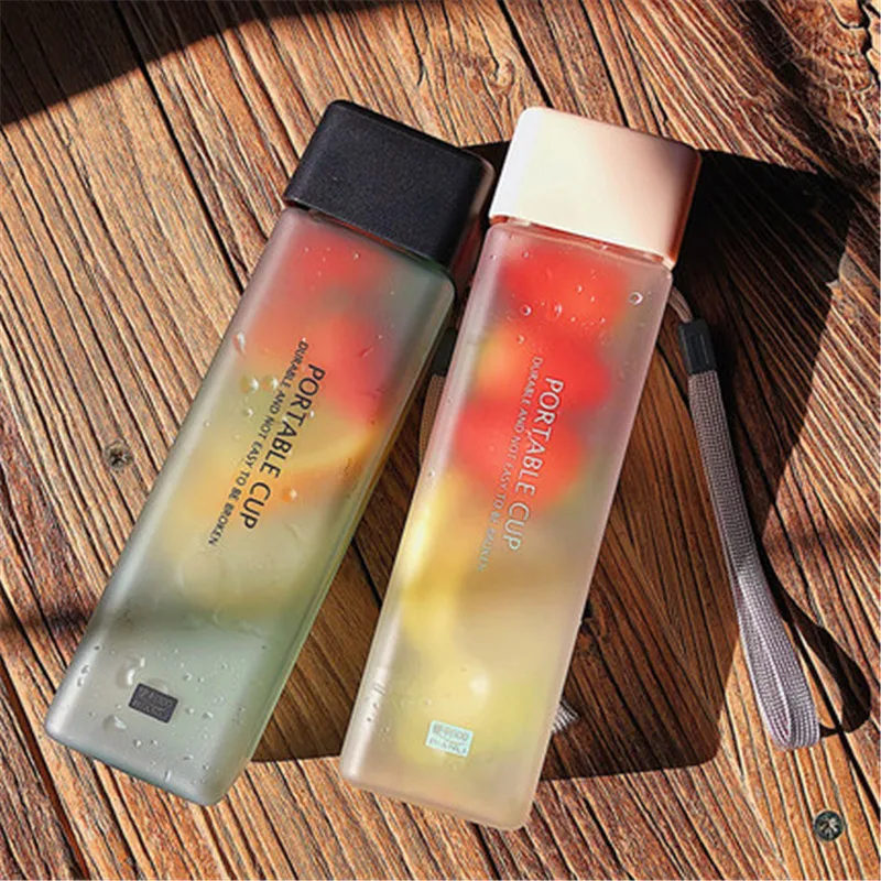 Новая Квадратная бутылка для воды 450 мл, матовая чашка для молока воды с фруктами, портативная герметичная спортивная чашка в Корейском стиле с веревкой