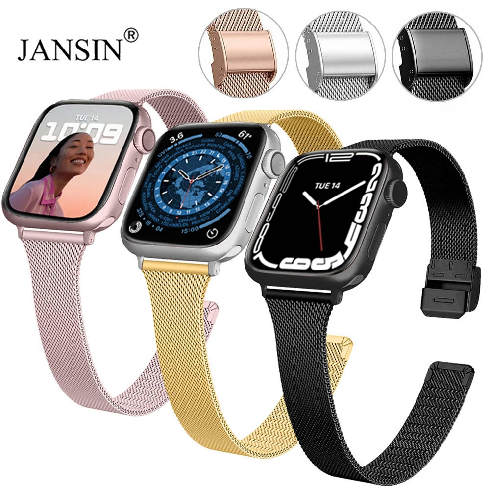 Ремешок Миланская петля для Apple Watch, браслет из нержавеющей стали для Apple watch 7 41 мм 45 мм 6 SE 5 4 44 мм 40 мм, 42 мм 38 мм