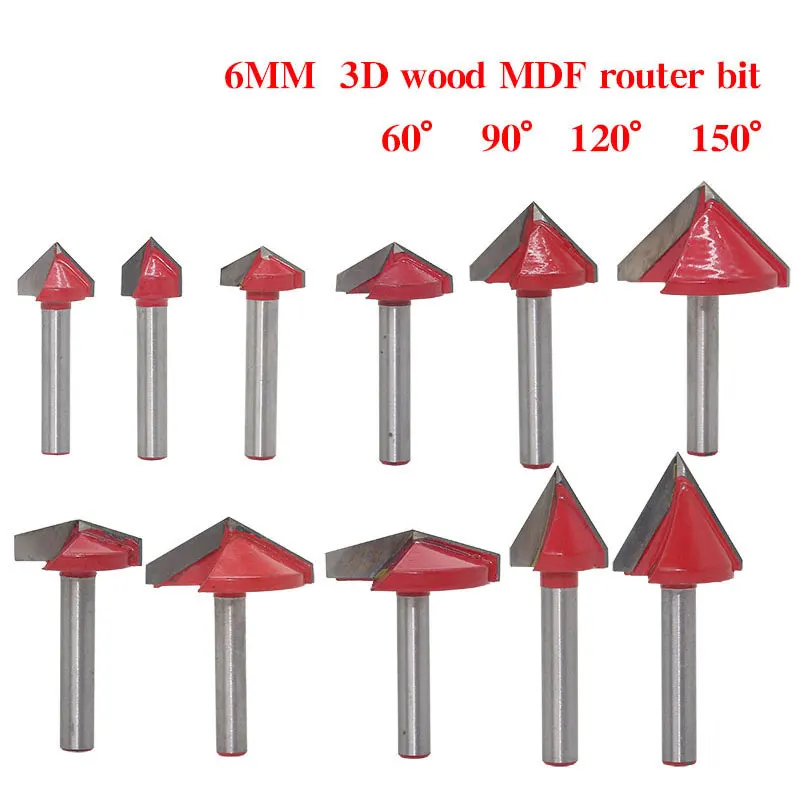 Фрезы с V-образным пазом, 1 шт., 6 мм, Гравировальный фрезерный резак с ЧПУ, 60-150 градусов, деревообрабатывающий резьбовой нож, режущий инструмент из карбида вольфрама