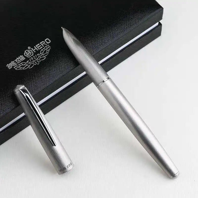 Ручка перьевая 100 металлическая с серебряными чернилами и золотым наконечником 14 к