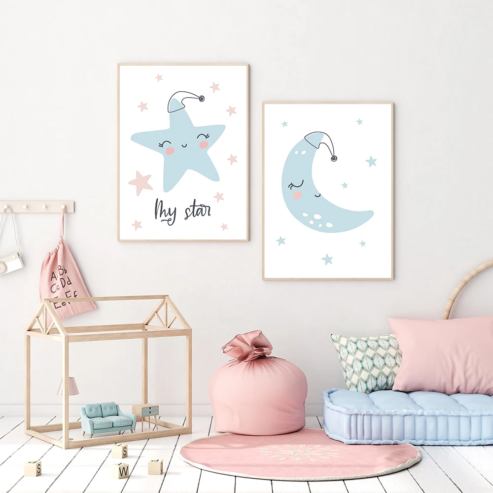 Милая луна облако звезда детская стена искусство Холст Плакаты принты мультфильм живопись украшение картина скандинавский детский Декор Спальни
