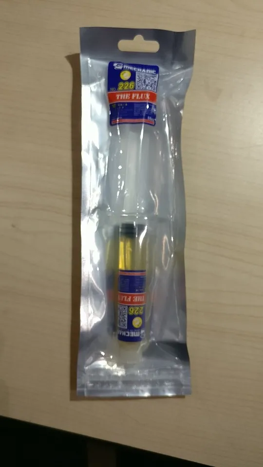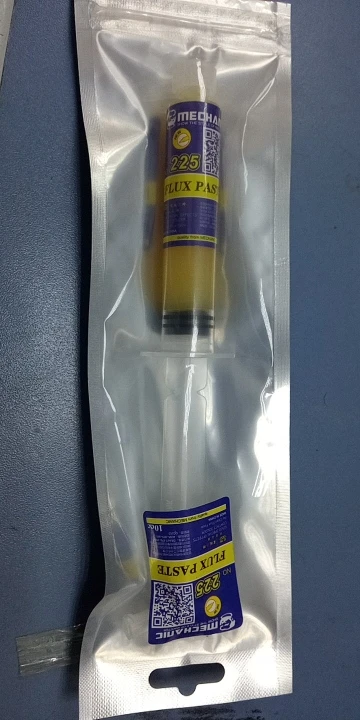 liquid flux. not paste. liquid. The included needle has crack and leaks sideways when squeeze plunger. making a mess.