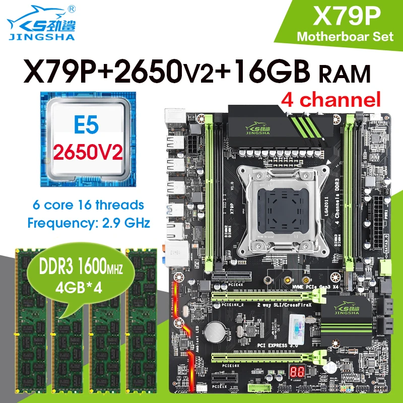 Комплект материнской платы JINGSHA X79 X79P с Xeon E5 2650 V2, 4x4 ГБ = 16 ГБ, память DDR3 1600 МГц, память ECC REG с радиатором sata3.0