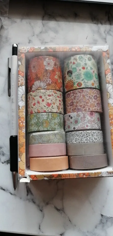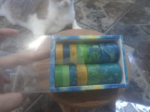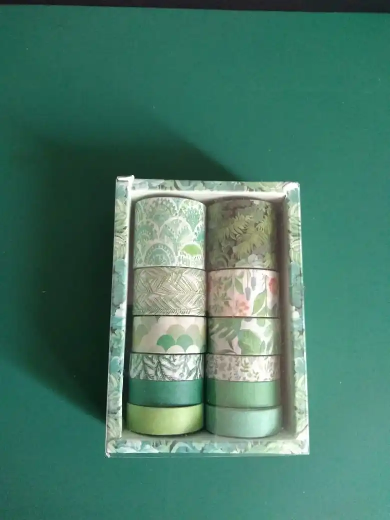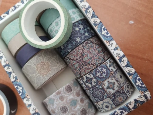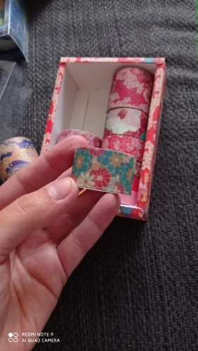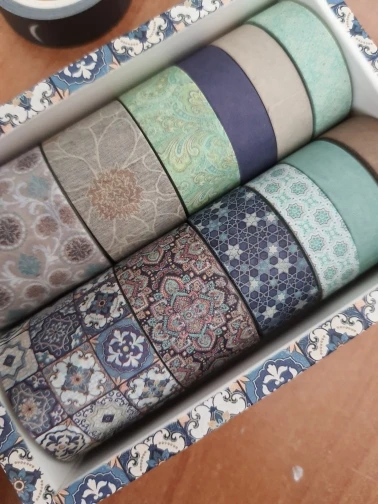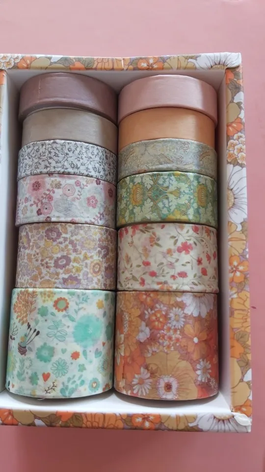 Аккуратная и милая коробочка, которая подойдет не только для хранения там коллекции декоративного скотча. Сам скотч миниатюрный, но очень даже красивый.