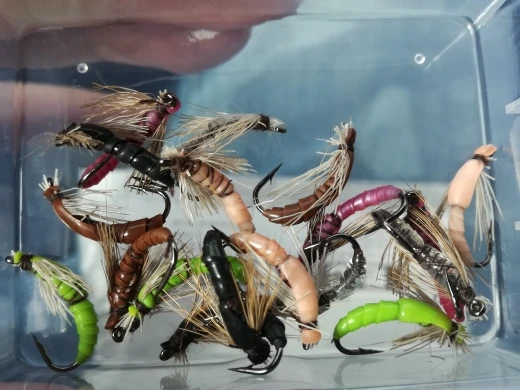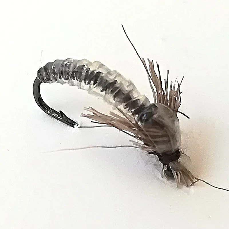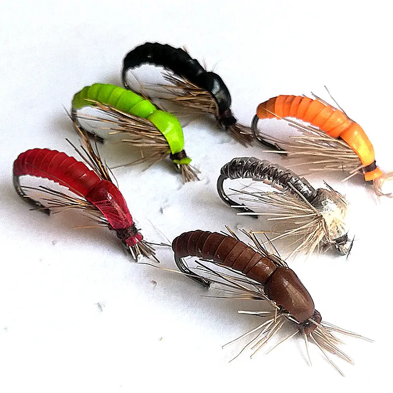 KKWEZVA 18 шт цвет силиконовый материал погружающийся Nymph Scud муха Жук червь рыболовные крючки в виде мухи для ловли форели искусственное насекомое приманка