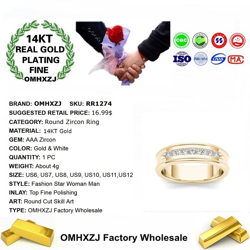 Кольцо женское OMHXZJ, серебро 14 карат, с цирконием AAA, в европейском стиле