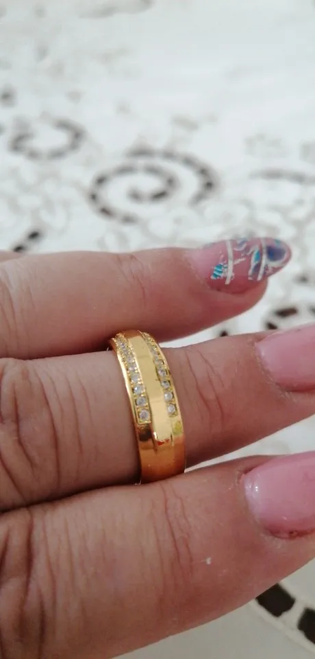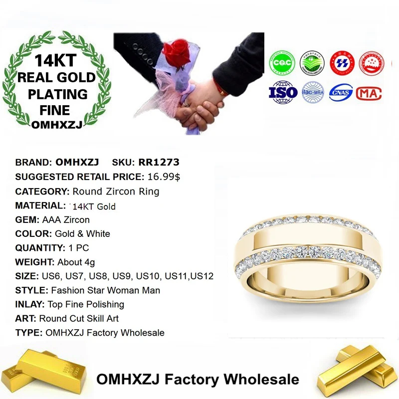 OMHXZJ оптовая продажа RR1273 Европейская мода изящный женский вечерние на день рождения свадьбу простой двухлинейный ААА Циркон 14KT Золотое кольцо