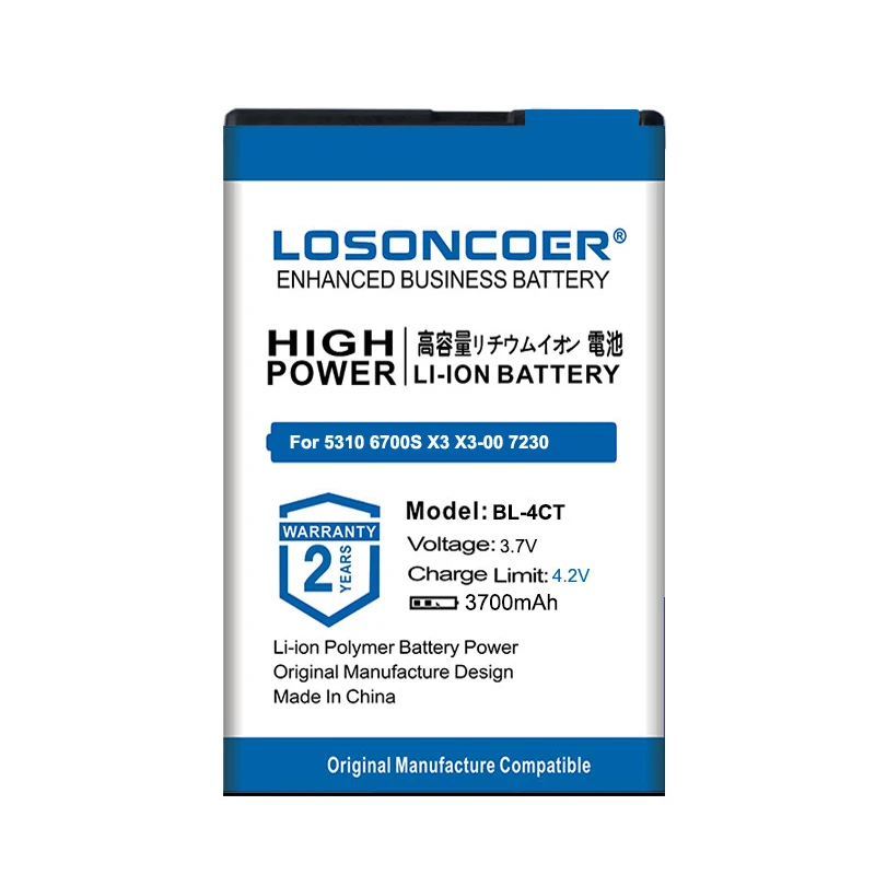 Профессиональное тестирование всехLOSONCOERБатарея прошла строгую проверку качества перед отправкой: 100% новый цикл и цикл, без эффекта памяти, 72 часа испытания на старение, высокотемпературный статический и активирует внутренний химический элемент ячейки, обеспечьте стабильность зарядки и разрядки. Поэтому вам не нужно сразу активировать, зарядить или использовать.