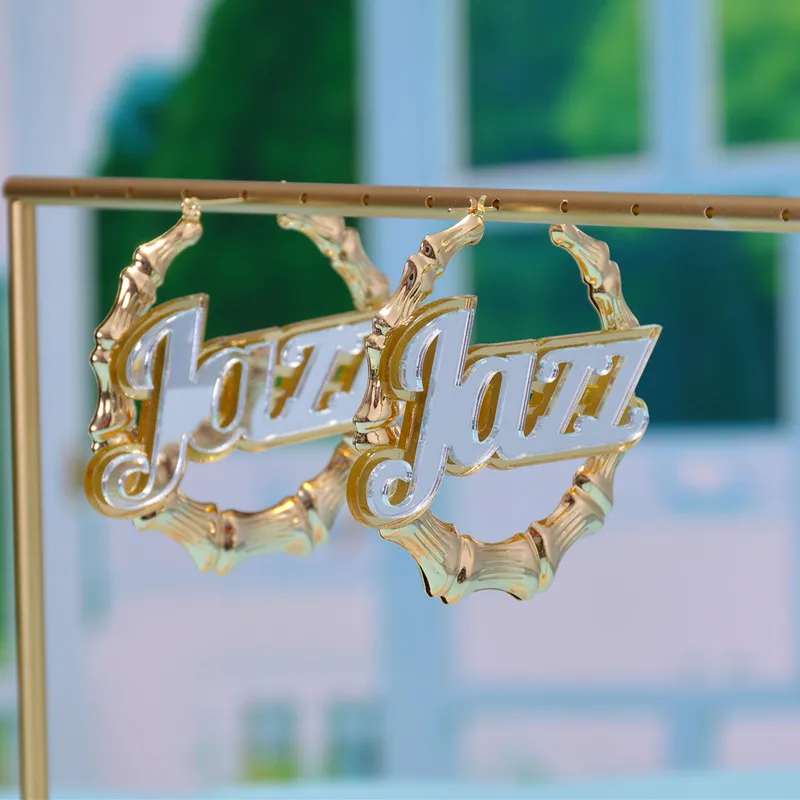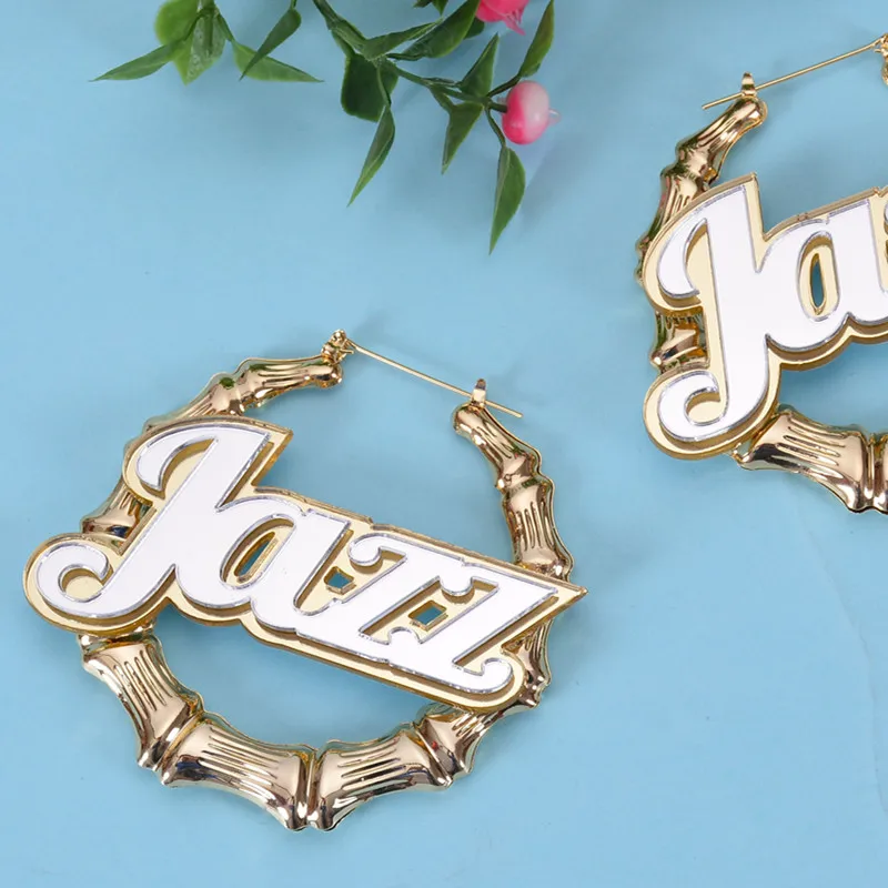 Серьги из бамбука, позолоченные, с именем на заказ, в стиле хип-хоп...